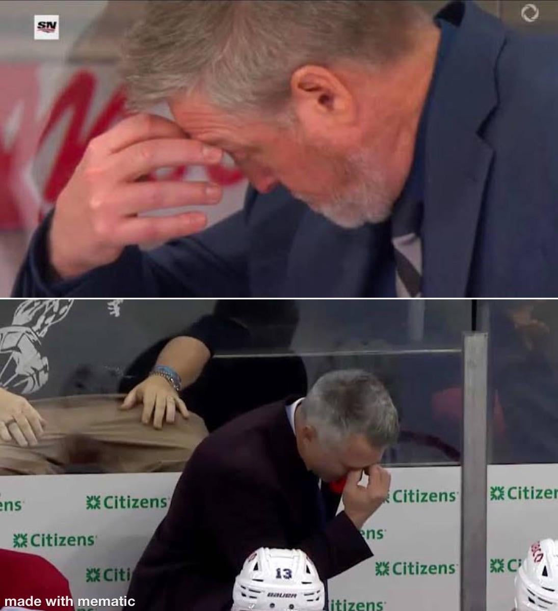 The universal hockey sign language for « WTF is this shit?! »