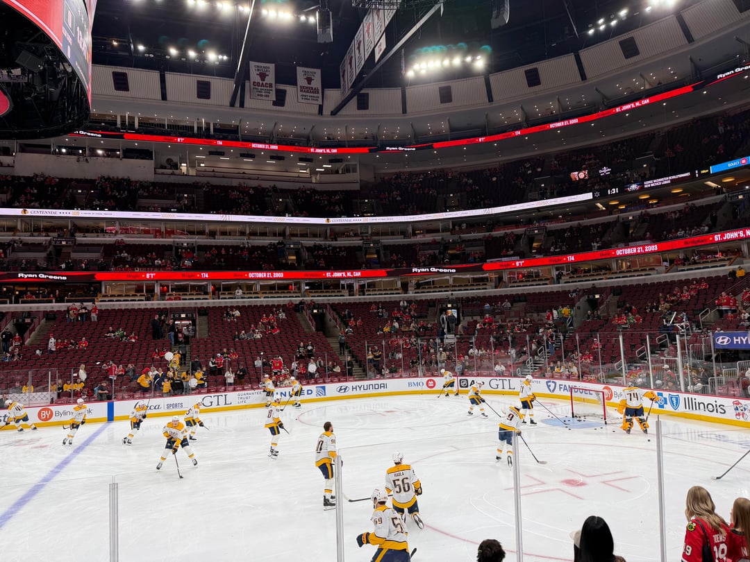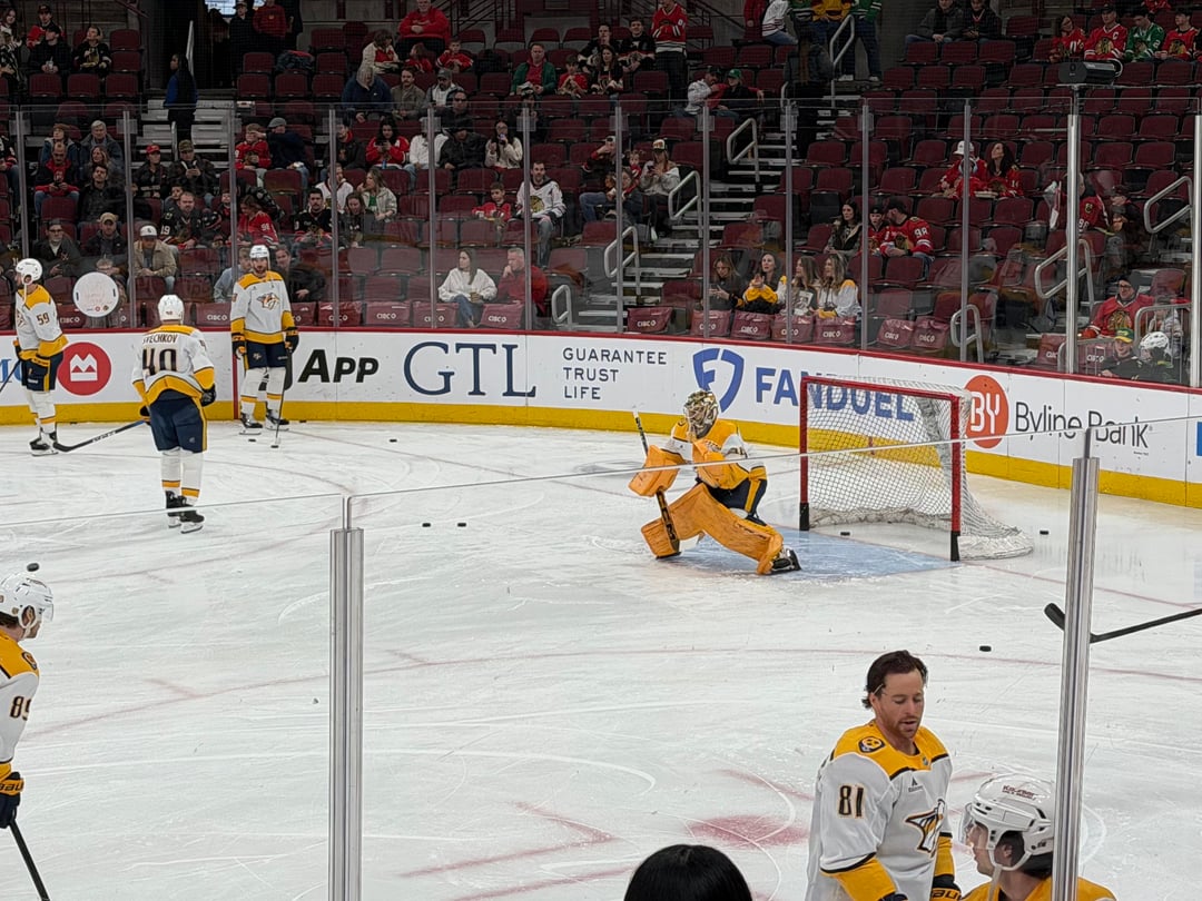 J’ai rarement l’occasion de voir les Preds sur la route, mais j’étais déjà à Chicago pour le week-end, travaillant sur le concert qui avait lieu ici hier soir, alors j’ai pensé que l’opportunité de rester une journée supplémentaire pour ce match était trop belle pour la laisser passer.