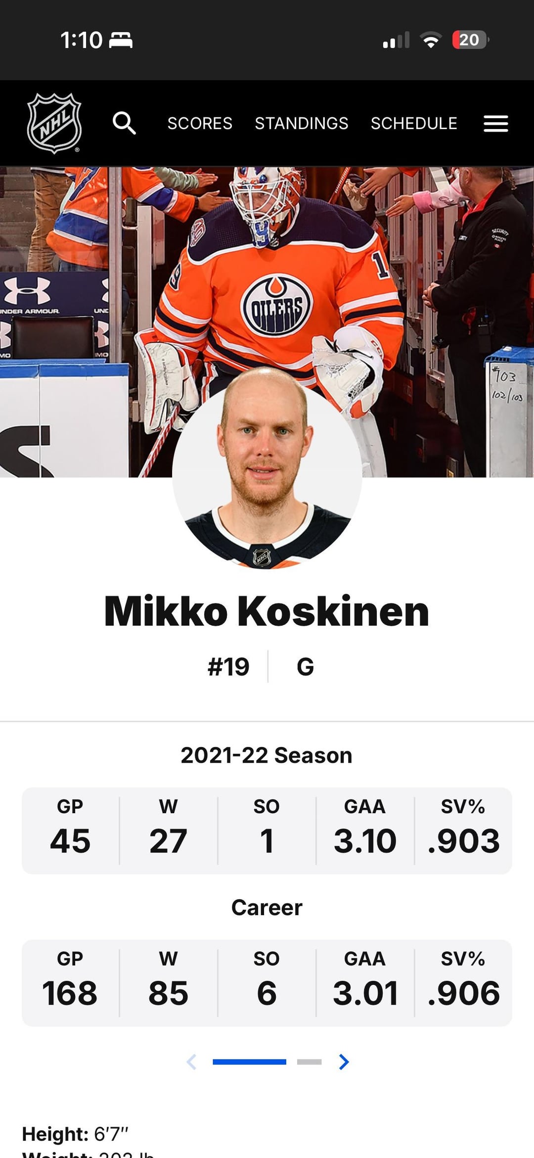 Koskinen was hated on too much because of his contract. But man was he consistent. 164 Oiler regular season games, and a .906 SV%. Behind some of the weaker Oiler rosters of the McDrai era too. He wasn’t gonna win a Vezina or consistently bail us out of a bad game, but as long as the team in front didn’t play like garbage we had a chance to win that night.