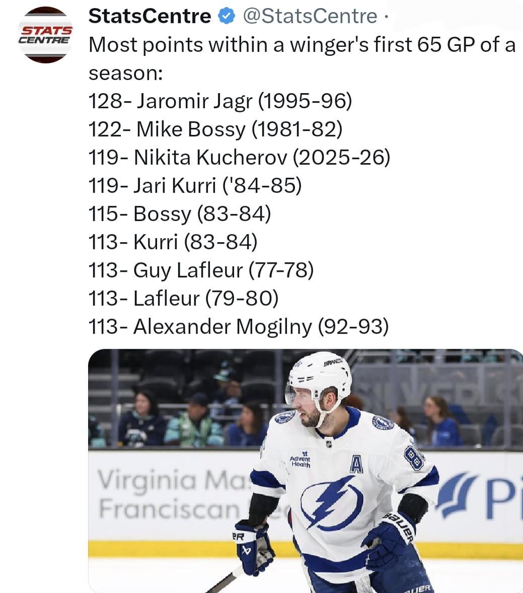 https://xcancel.com/i/status/2035938045153735009 — Sens-Fan-85 Ligue nationale de hockeyLNHNational Hockey LeagueNHL 7 Comments Bagomuffins 1 mois ago Okay but what level of effort does he give in the all star game???? RevivalGhost 1 mois ago It seems like he always kinda chills for the first part of the season and then goes nuclear. hoochtag 1 mois ago Jagr putting up those numbers in that era is just unreal. VonDingwell 1 mois ago Considering the high scoring 80’s, it’s high time we start talking about Kuch being the best RW of all time. jabrony26 1 mois ago Yes the cherry picker Old_Canuck 1 mois ago Man the 80’s were a blast !! Loved watching Bossy and Flower streak down the wing for the win. pattyG80 1 mois ago When you consider some of those names were shooting on Darren Pang, Chico Resch and Glenn Hanlon vs today’s goalies, that is pretty impressive. Write A CommentVous devez vous connecter pour publier un commentaire.