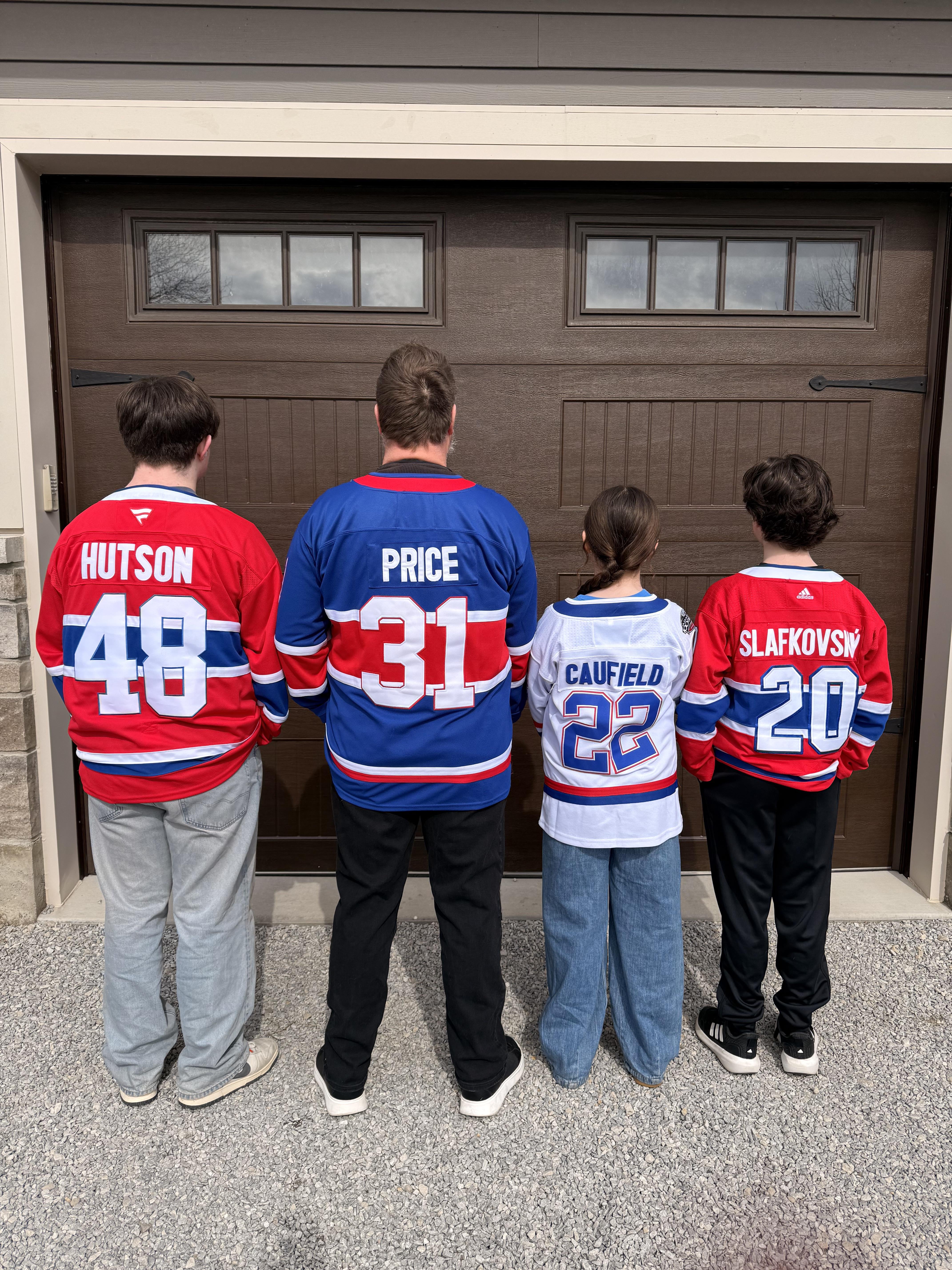 Nous parlions d’acheter des maillots et le problème est que nous en voulons un pour tout le monde. Nick Suzuki est notre incroyable capitaine et leader. Notre champion des scores discrets, alors oui, c’est Nick. Mais Caufield pourrait alors marquer 50 buts et 40 passes décisives. Il sourit si grand et est heureux pour tout le monde autour de lui. Demidov est la nouvelle recrue montante qui fait preuve de compétences d’élite tout simplement inexploitées. Slafkovsky s’est révélé être un tel personnage, un ami et un coéquipier fidèle. Il a trouvé son jeu et constitue une telle force en tant qu’attaquant puissant. Je ne peux qu’aimer ce gars… oh ouais, et puis il y a Hutson qui redéfinit la position, danse sur la glace, fait des feintes de tête et fait des pirouettes. D’abord sur la glace, le dernier hors mentalité. Procurez-vous vos maillots Fowler maintenant avant qu’il ne devienne le prochain gardien de but d’élite avec lequel nous serons gâtés après Dryden, Roy et Price. Tu vois mon problème ? J’ai besoin de plus d’argent, c’est tout. Quel nom et quel numéro représentez-vous ? C’est nous.
