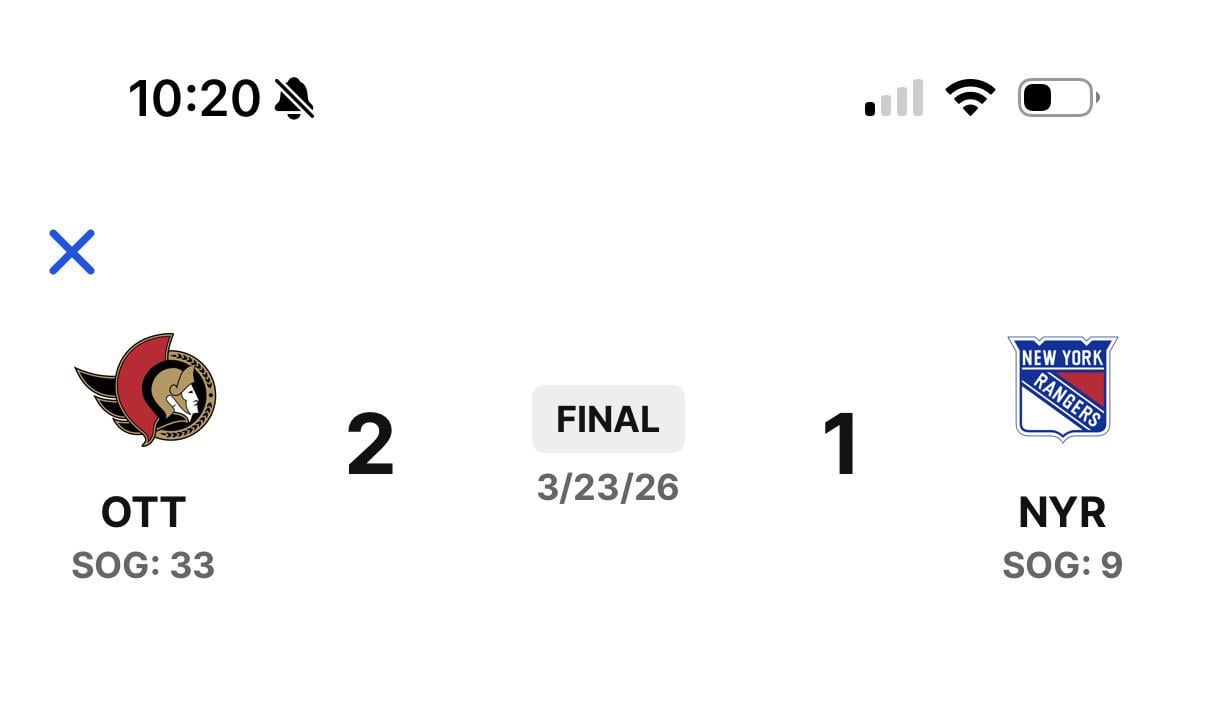 I was gonna roast the rangers about only getting my 9 shots but then I remembered we lost 9-0 to the Islanders and decided to confess my sin and sit down.