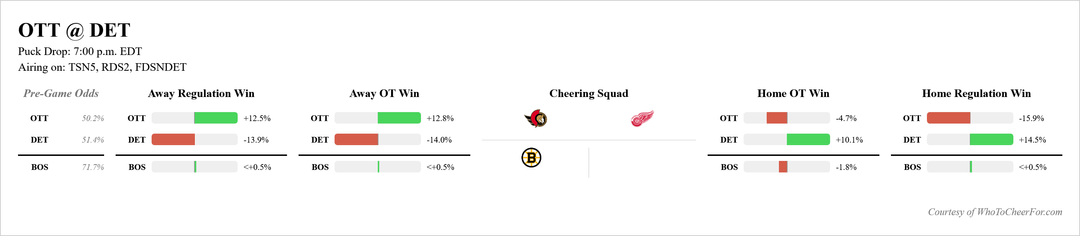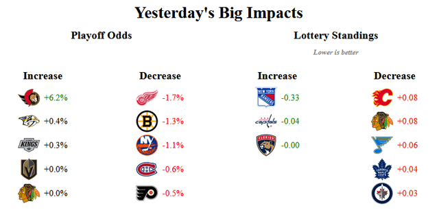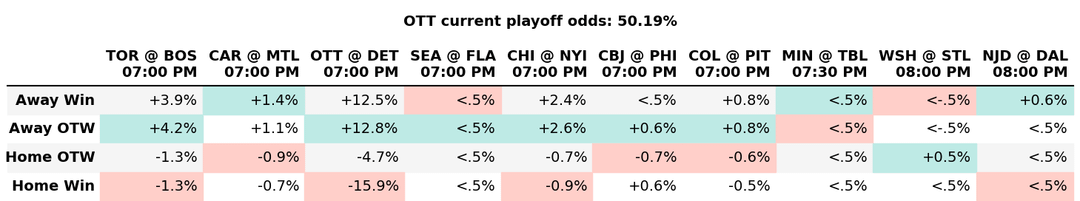 Ottawa’s playoff odds are 0.3 better with an overtime win (+12.8) than a regulation win (+12.5)?