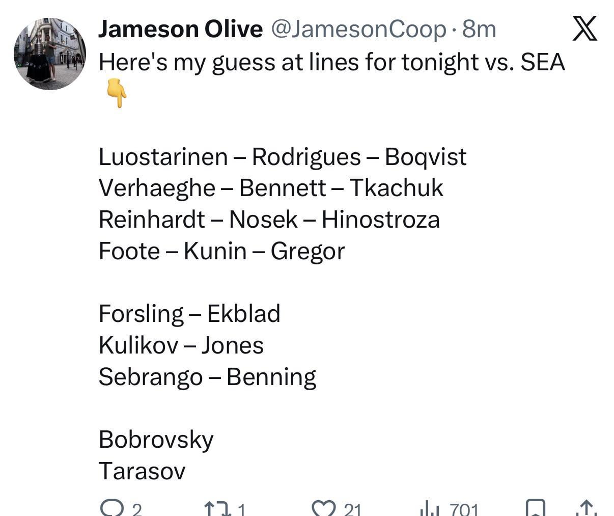 Idk whats worse, these lines, or those lines we had back in January post Jones and Marchand but before Tkachuk