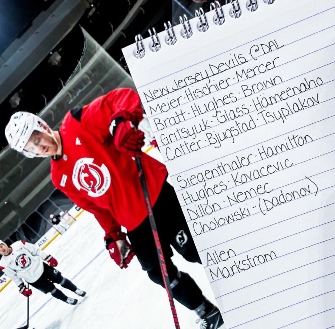 [Stein] Aucun changement pour #NJDevils ce soir contre Dallas, roulant avec ce look et Jake Allen dans le filet des partants.