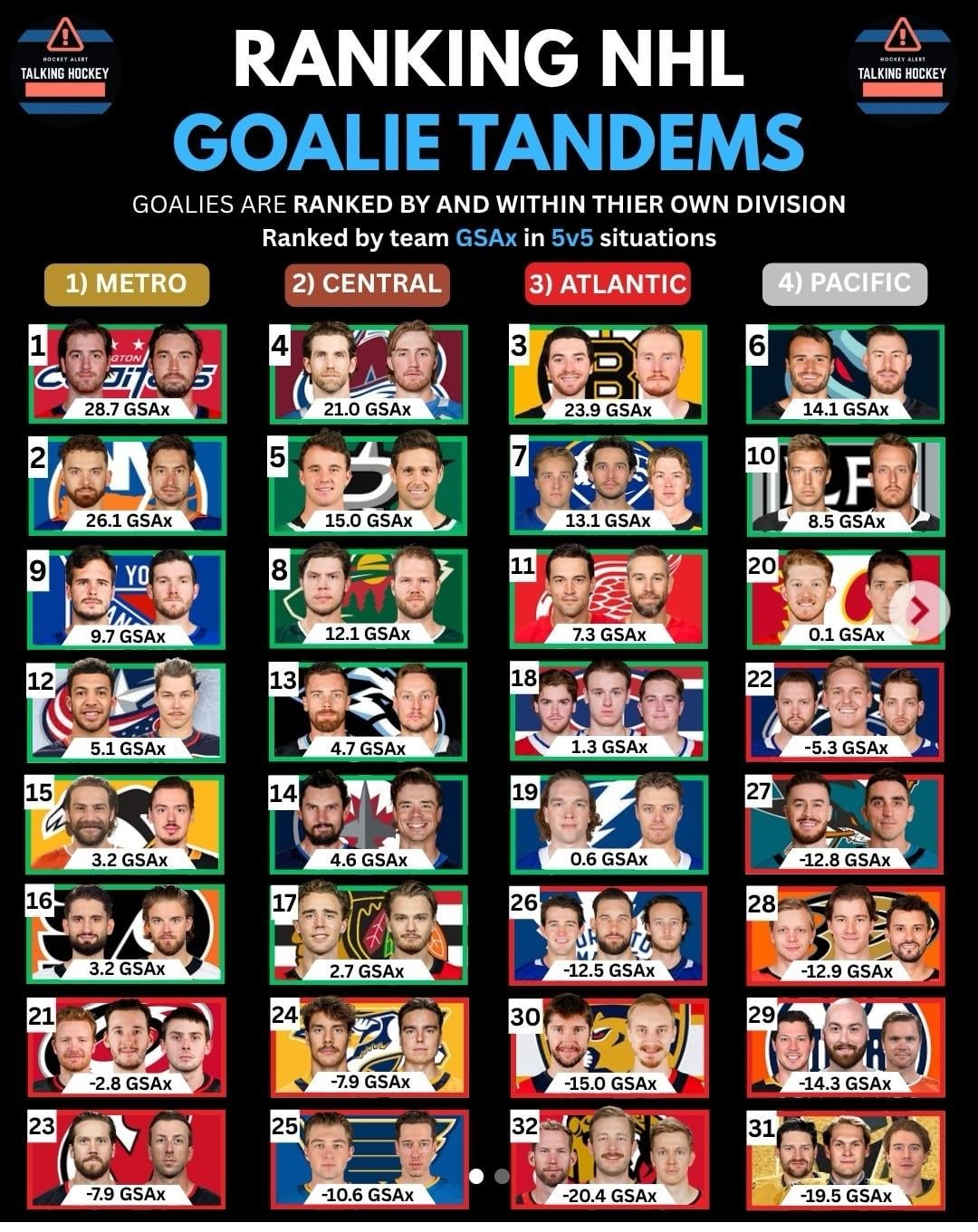 Je viens de voir ça, les tandems de gardiens de VGK se classent 5 contre 5.