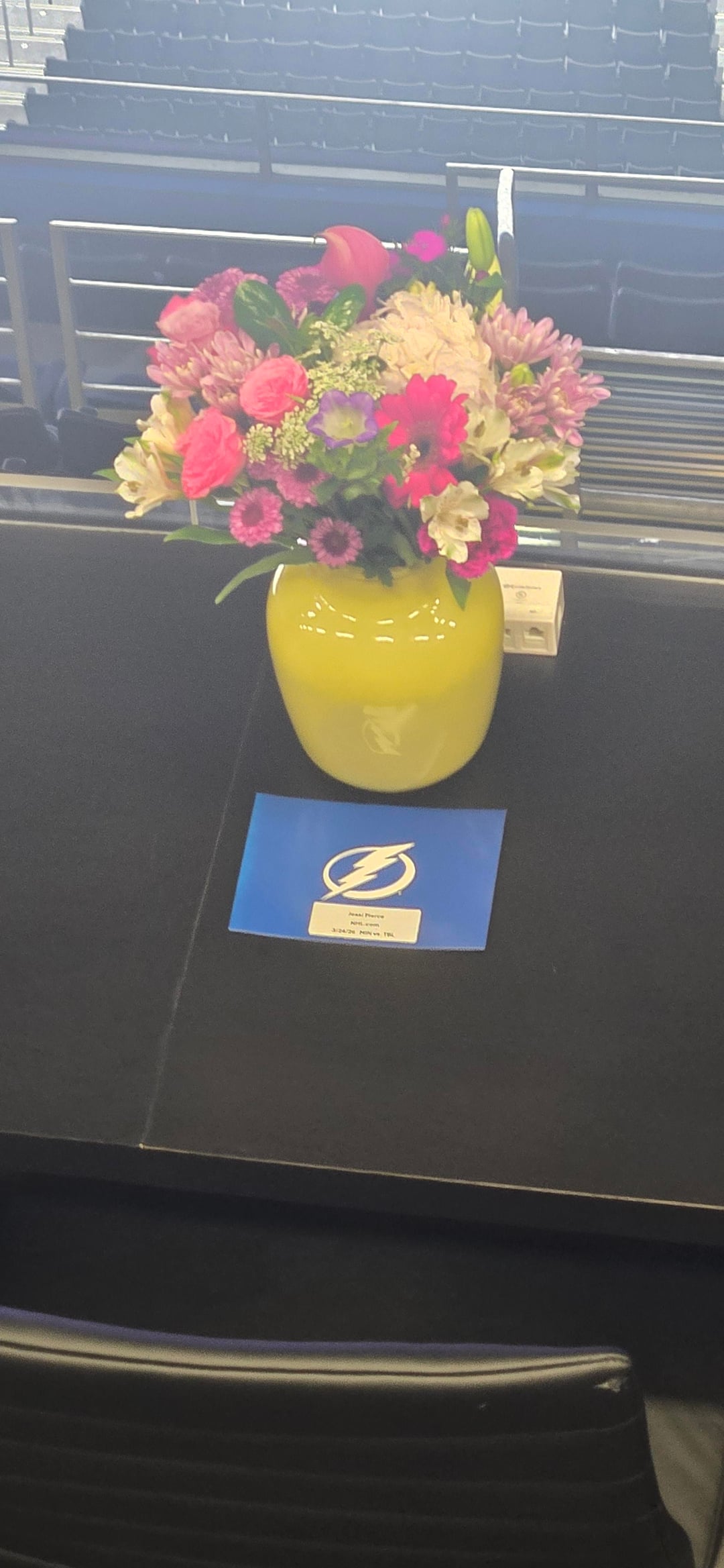 Ma photo est merdique, mais voici la place réservée à Jessi Pierce dans la tribune de presse du Lightning ce soir. 💔