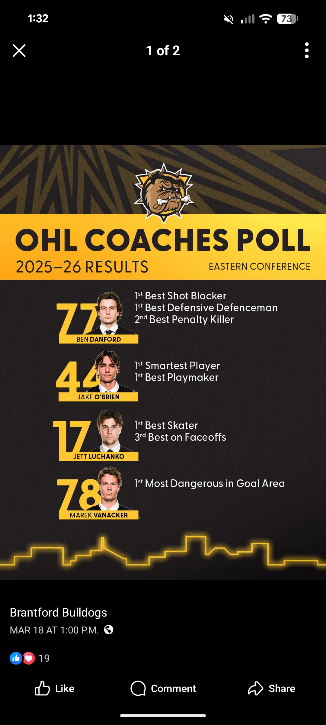 Élu meilleur patineur et 3e ex æquo pour les mises au jeu. J’ai vu qu’il jouait aussi beaucoup sur l’aile parce que les Bulldogs sont empilés au milieu. Je ne dis pas qu’il est McDavid 2.0, juste une information intéressante.