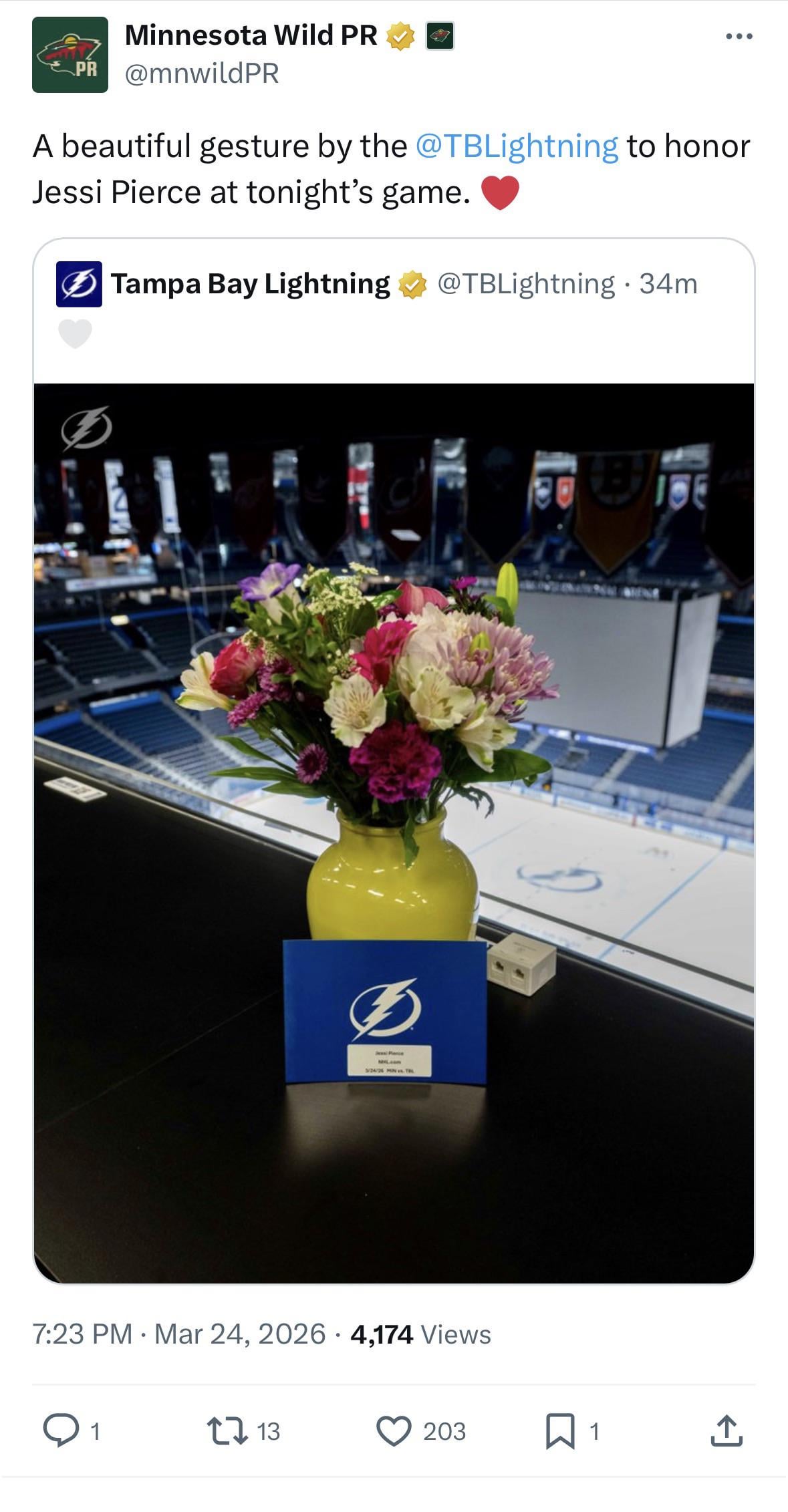 Wild fan in the Tampa Bay Area just dropping in to say that this is a class act, and I’m not surprised about it from an organization like Tampa Bay 🫡