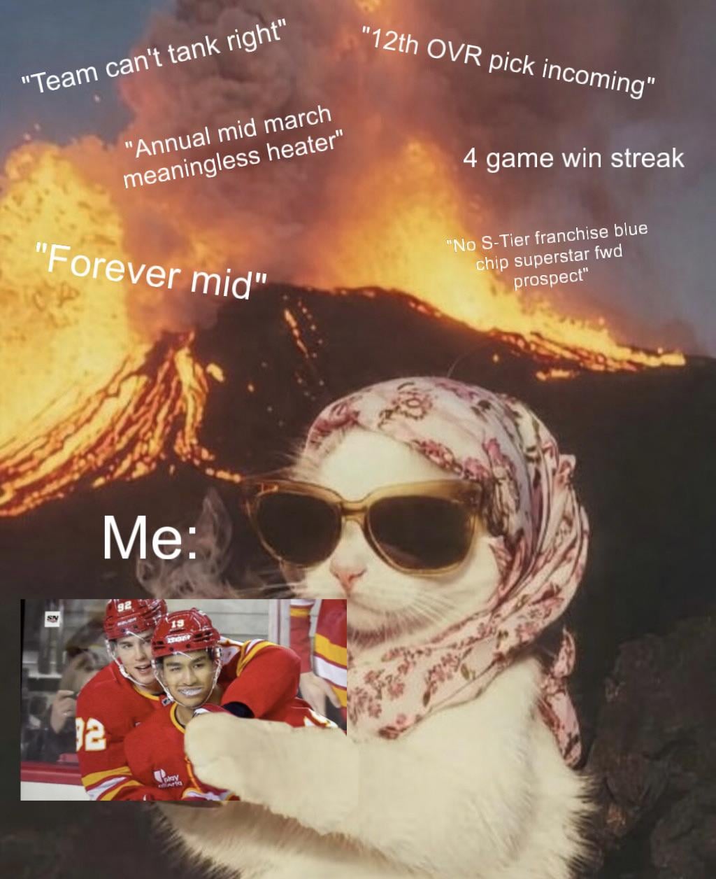 5. Everybody wants the Flames to play the youngsters so the team tanks. When those youngsters perform and the team wins, the same people whine and complain about the team not tanking.
