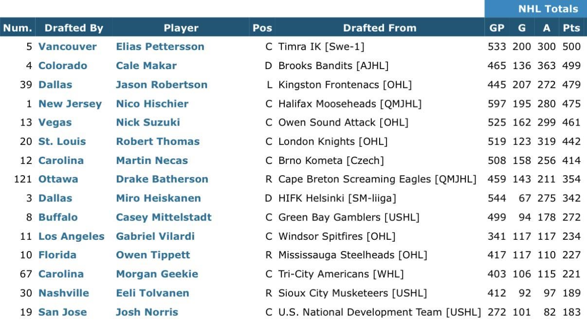 I must say, this was a great draft class. 10 players who will easily clear 500 pts in their career plus two franchise goalies.