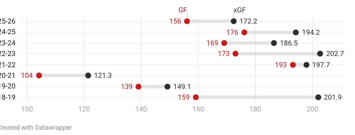 This is only looking at 5-on-5 analytics. This year’s team is significantly better on the powerplay, and that’s going to matter in the playoffs where you typically get fewer opportunities and 5-on-5 goals are harder to come by.