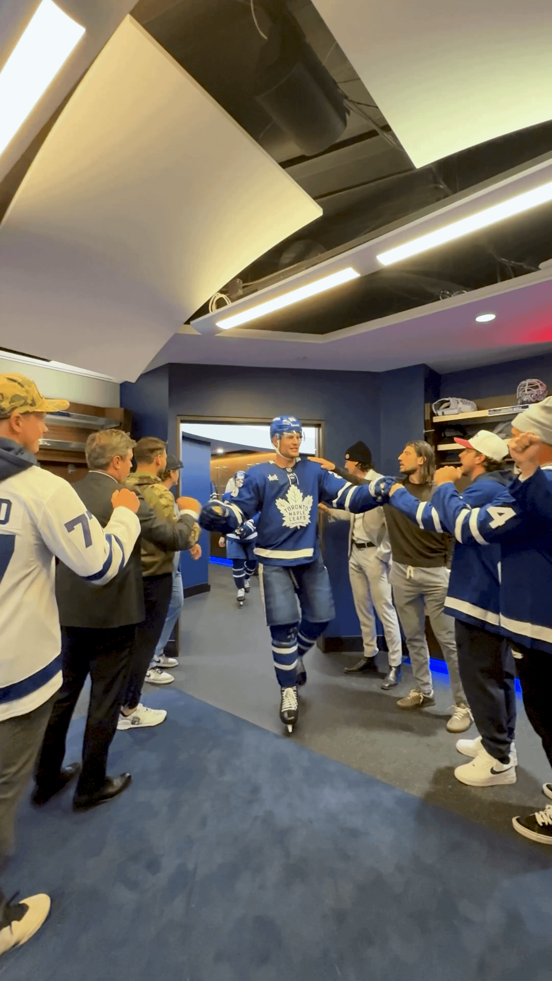 [Maple Leafs via X] Les Blue Jays de Toronto frappent du poing les joueurs des Leafs et applaudissent « Come On Eileen », après la victoire dans les vestiaires
