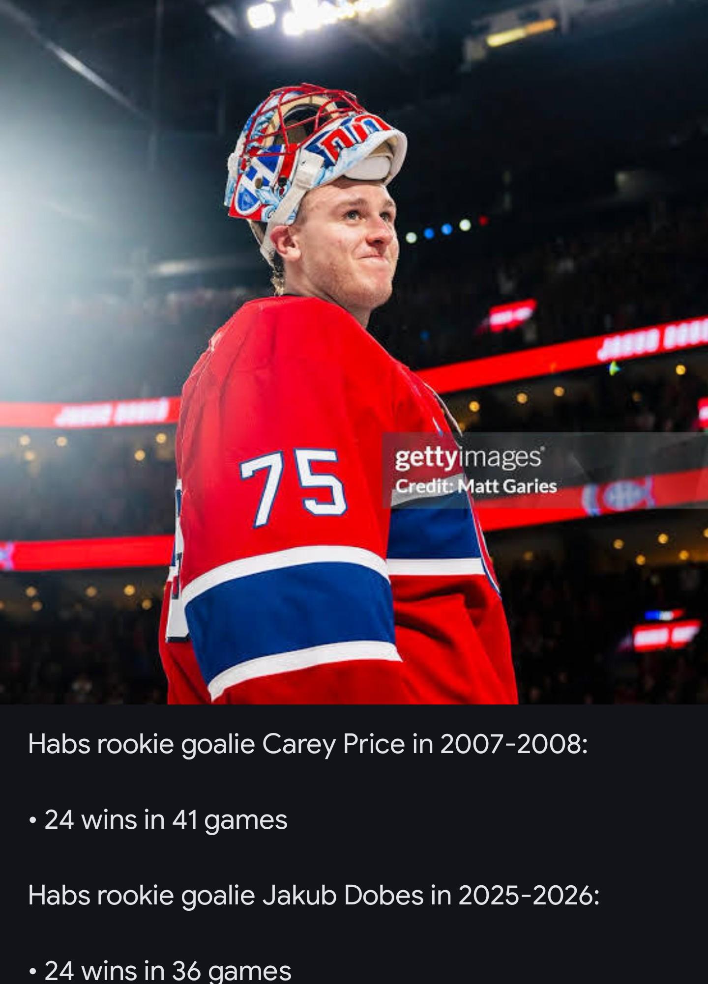 Dobes is an entity unto himself. He’s not Price, because Price projected coolness under pressure. Dobes is like a classic Habs fan – anxious, intense, and emotional. It’s his fuel – he sees the game the way kids see their heroes stepping up when facing adversity. As a fan for 50+ years, this is the guy I want in the playoffs.