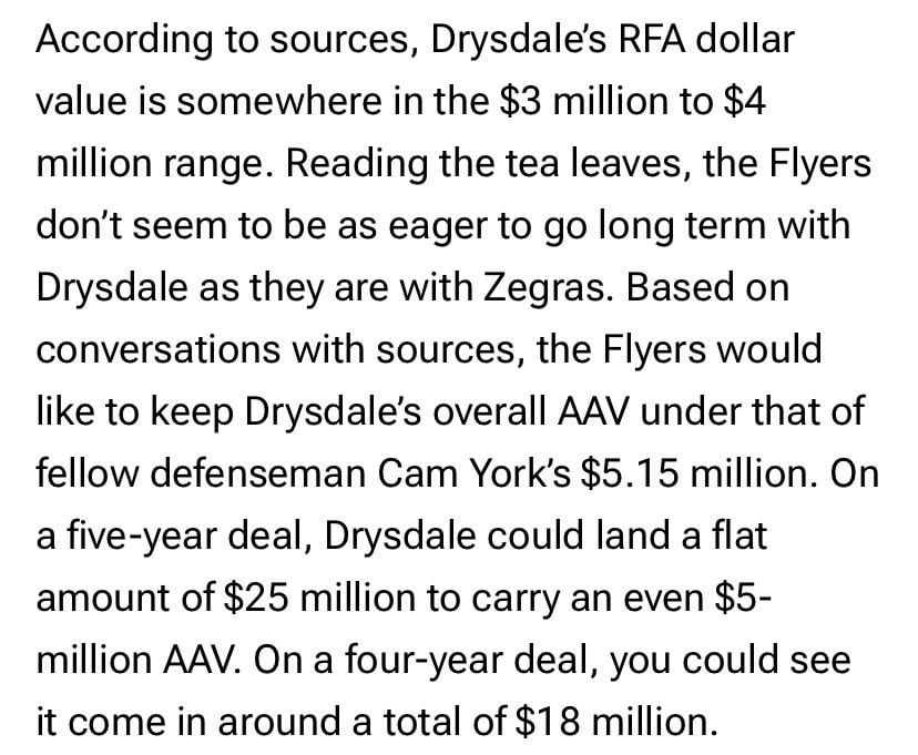 [Anthony Di Marco] D’après des conversations avec des sources, les Flyers aimeraient maintenir l’AAV global de Drysdale sous celui des 5,15 millions de dollars de son compatriote défenseur Cam York – Daily Faceoff (3/24)