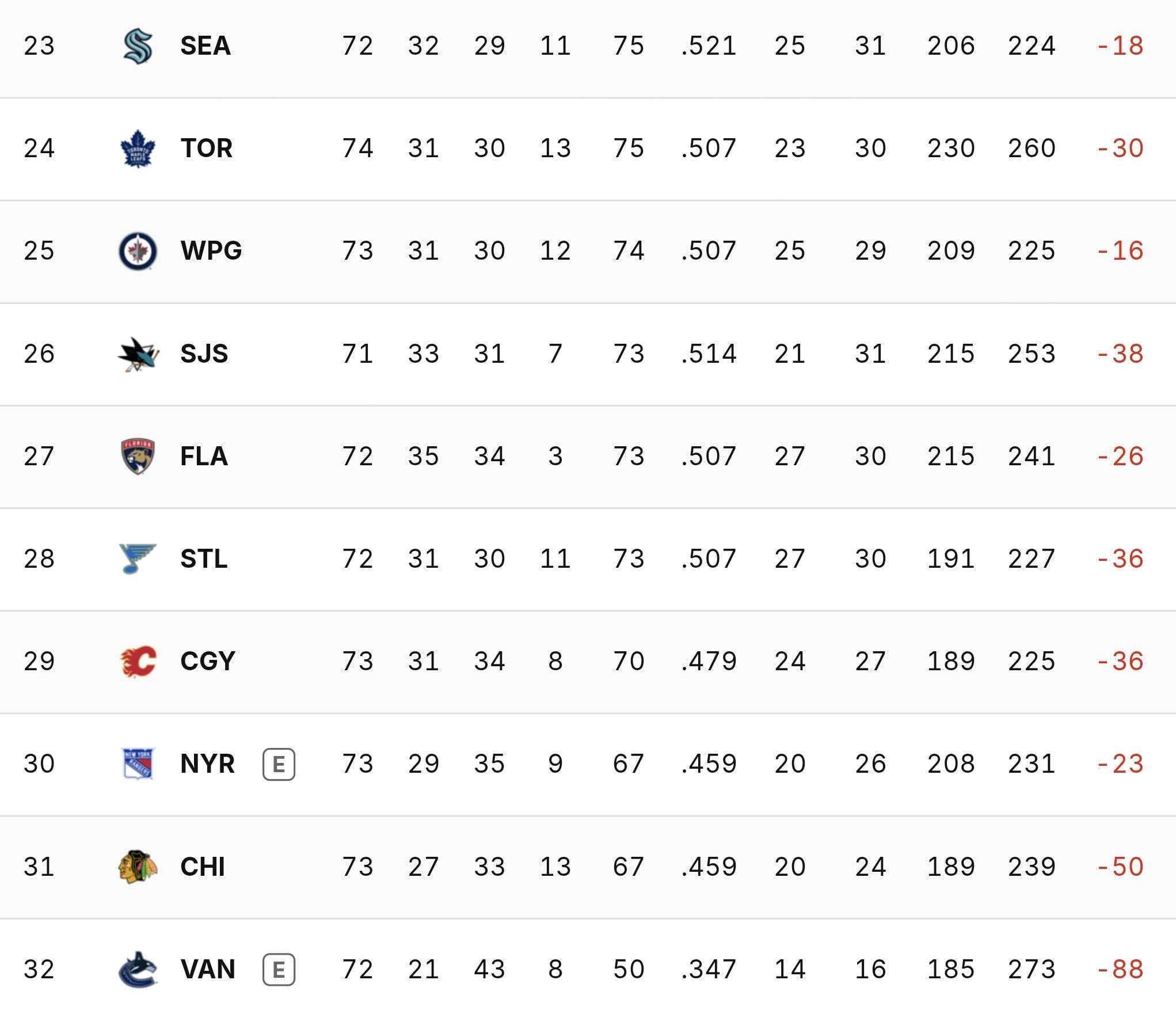 I’m a 1/2 glass full kinda guy and the good news is this absolutely has to be rock bottom. I don’t think you can have a worse season than clearing last place by 20 points. At least this season forced ownership into a rebuild because they didn’t seem to be learning their lesson. No point in perpetually trying to just be a bubble playoff team. Do it right and build a true Stanley Cup contender even if it takes longer. The pattern amongst Cup winning teams in the past 20 years is they have multiple top 3 picks. Sounds crazy but that should be the goal for the next season or two. The goal should be to be a true Stanley Cup contender in 5-10 years. Have to have a vision if you want to be great..