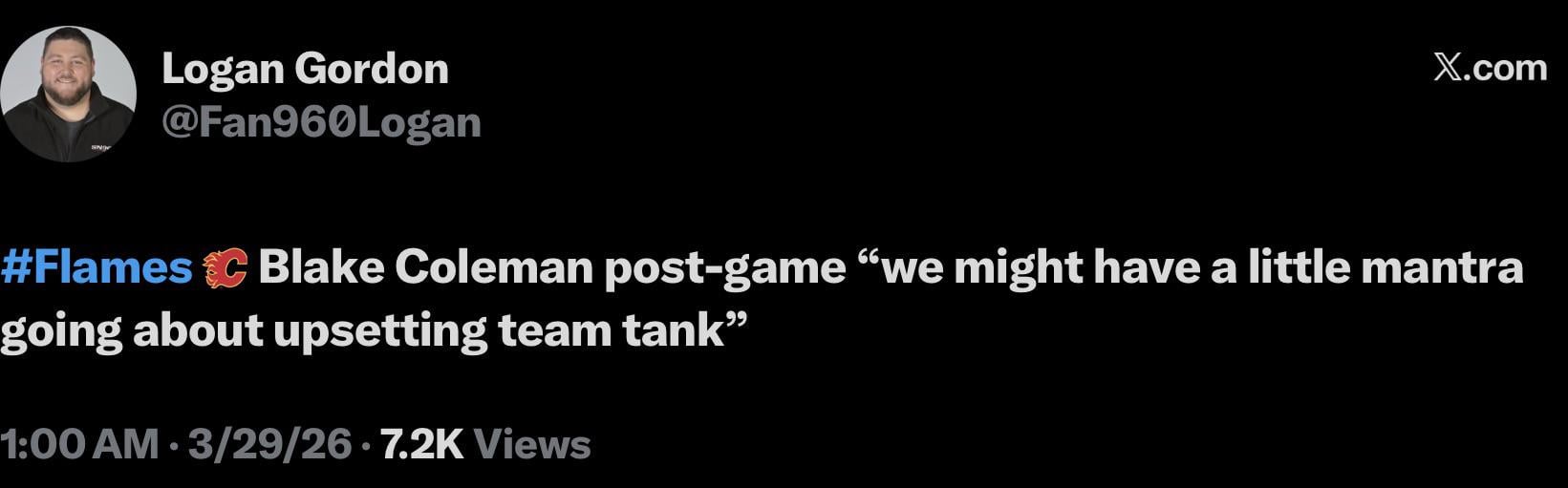2. Players don’t tank, these guys are playing for their next contract and for pride and honestly if Backlund or Coleman or any of the Veterans came out and said the were purposefully playing worse for the tank I would think less of them.