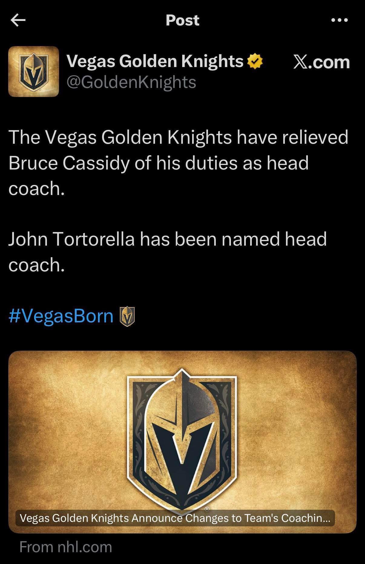 Wow that’s a fucking stupid move. Cassidy is a top 5 if not top 3 head coach and Torts is a clown.