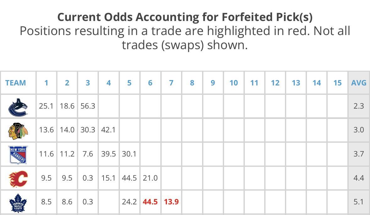 Reminder that the leafs have a cumulative chance of 41.6% to pick within the top 5 if they finish fifth.