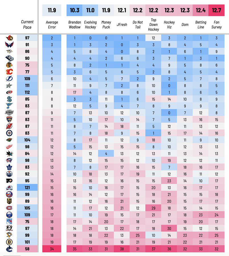 3. remember at the start of last season when Money Puck had us at the highest % to win the cup?