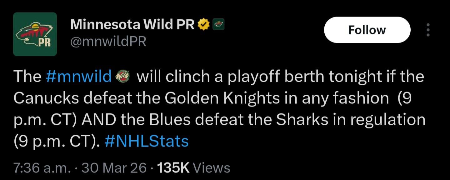 Hughes’ playoff hopes riding on us is kinda funny lol