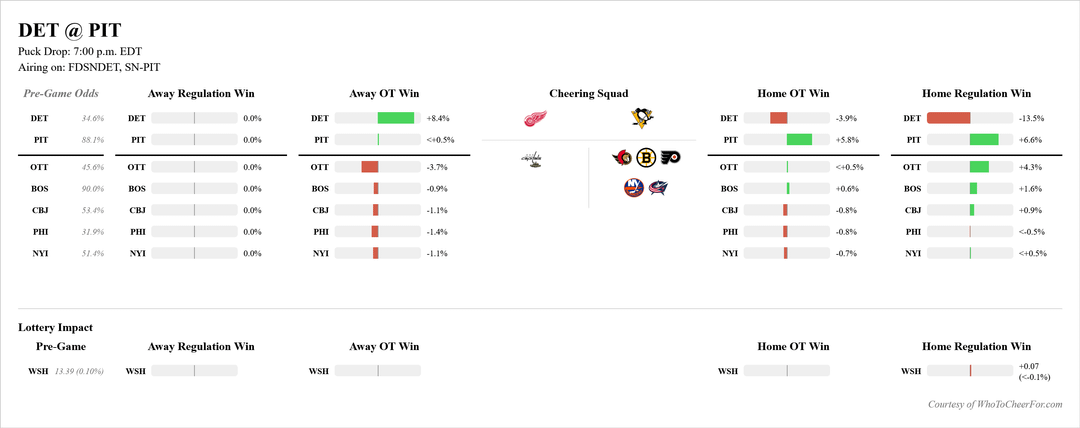 So naturally, Boston, NYI, Detroit, Philly and Columbus win. Almost guaranteed the way it’s been going lately