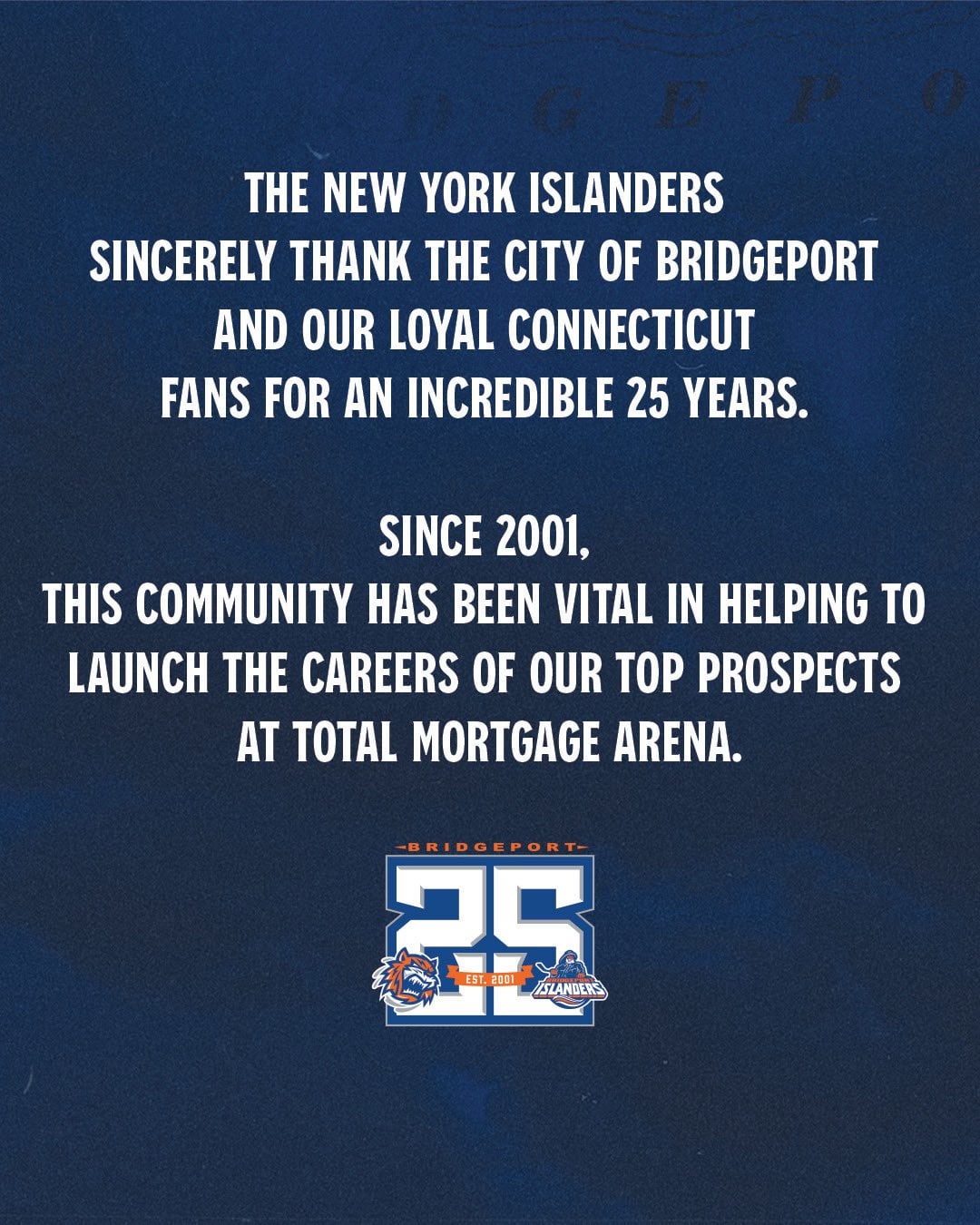 6. “Thank you Bridgeport. You have been our AHL location since 2001.”