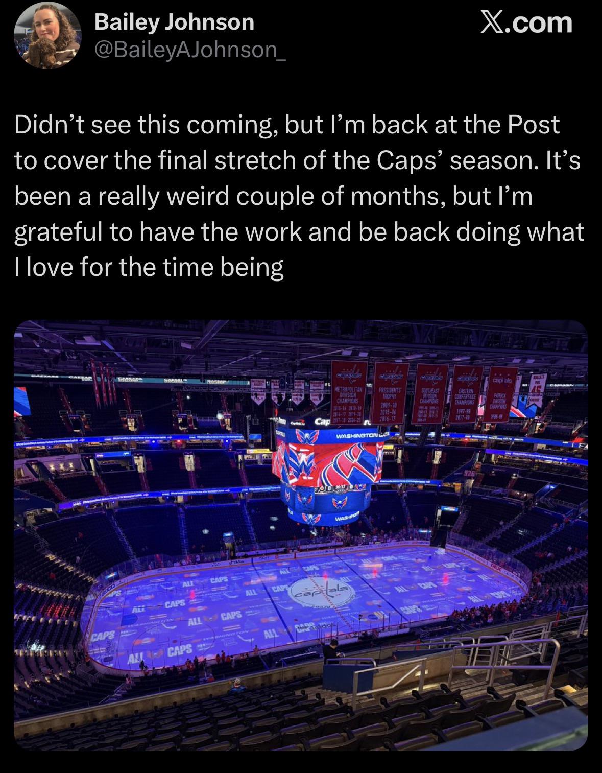 Bailey Johnson de retour couvrant les Caps for the Post — ChesterCardigan Association de l’EstCapitals de WashingtonEastern ConferenceMétropolitaine DivisionMetropolitan DivisionWashington Capitals 8 Comments theanderson51 4 semaines ago Wonder why. Hopefully someone’s not retiring. HokiEJP 4 semaines ago I cancelled my subscription after she was let go. Hope they realized that sports do matter Chas_P_Anderton 4 semaines ago I’m thrilled that Bailey’s getting a paycheck again but WTF WaPo?!? BongoTheMonkey 4 semaines ago Someone has to feed info to the LLM for the Post. Helpful-Cod1422 4 semaines ago Yeah that’s awesome . juno7032 4 semaines ago So happy for her and us el_osoalto 4 semaines ago @ WaPo sports https://preview.redd.it/4n7guzamchsg1.jpeg?width=640&format=pjpg&auto=webp&s=bf6bf192e304c901db0a709707ca7198cfe85448 HowardBunnyColvin 4 semaines ago Never should have let her go. Write A CommentVous devez vous connecter pour publier un commentaire.