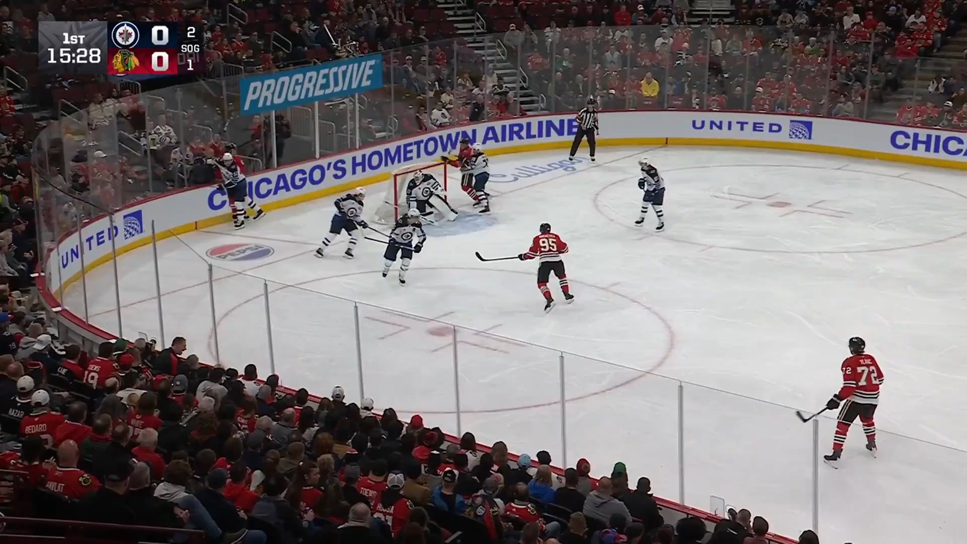 Premier but en carrière dans la LNH pour Anton Frondell, qui inscrit un tir dans la fente devant Connor Hellebuyck.