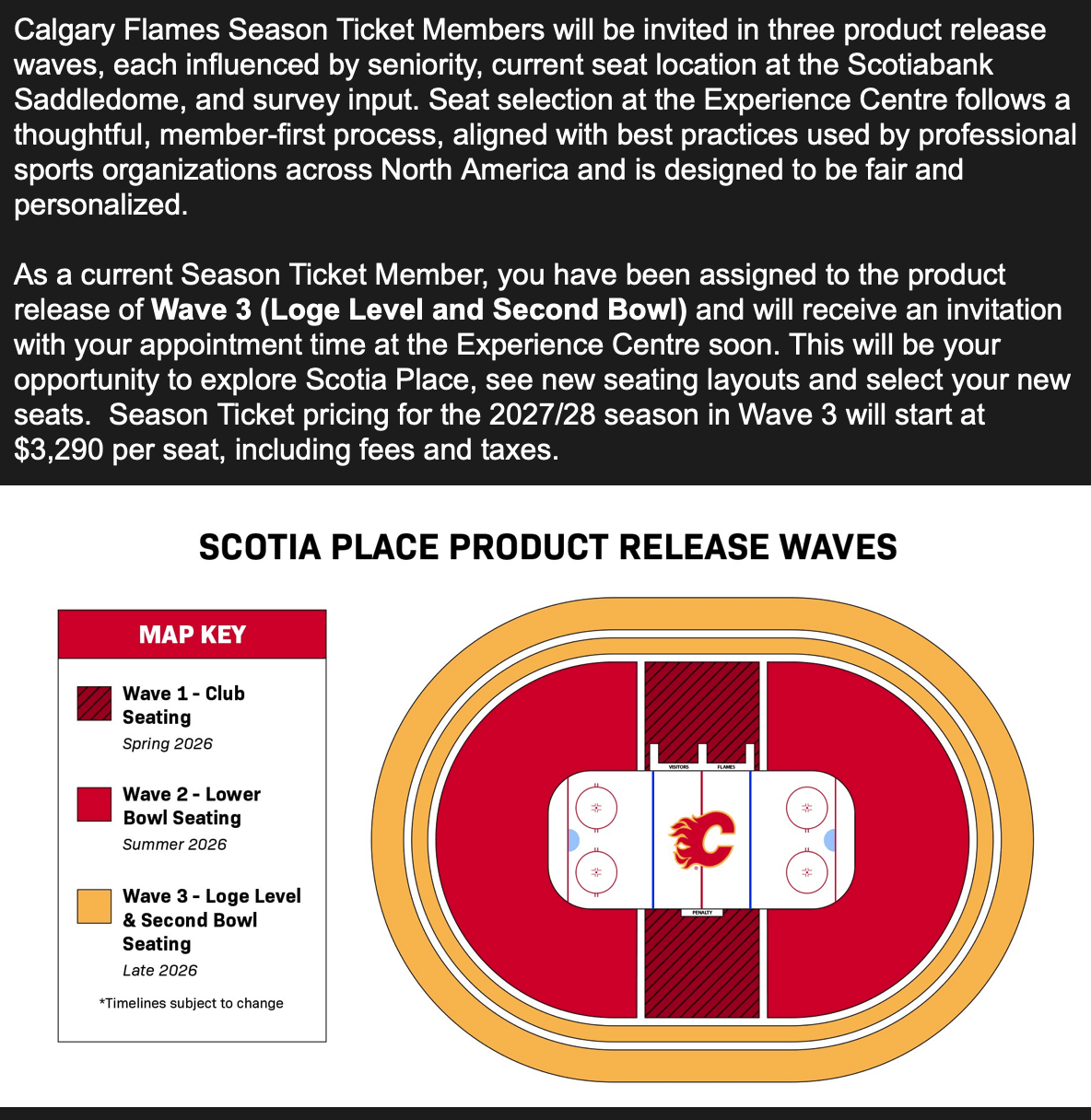 Unfortunately, there is no Scotia Place equivalent to Press Level seating (aka Upper Loge, or nosebleeds) in the new facility. Those smart fans that had season tickets in the Saddledome’s best kept secret (the first rows of PL) will now be forced to pay more. But at least you won’t have as much of a hike up to your seats!