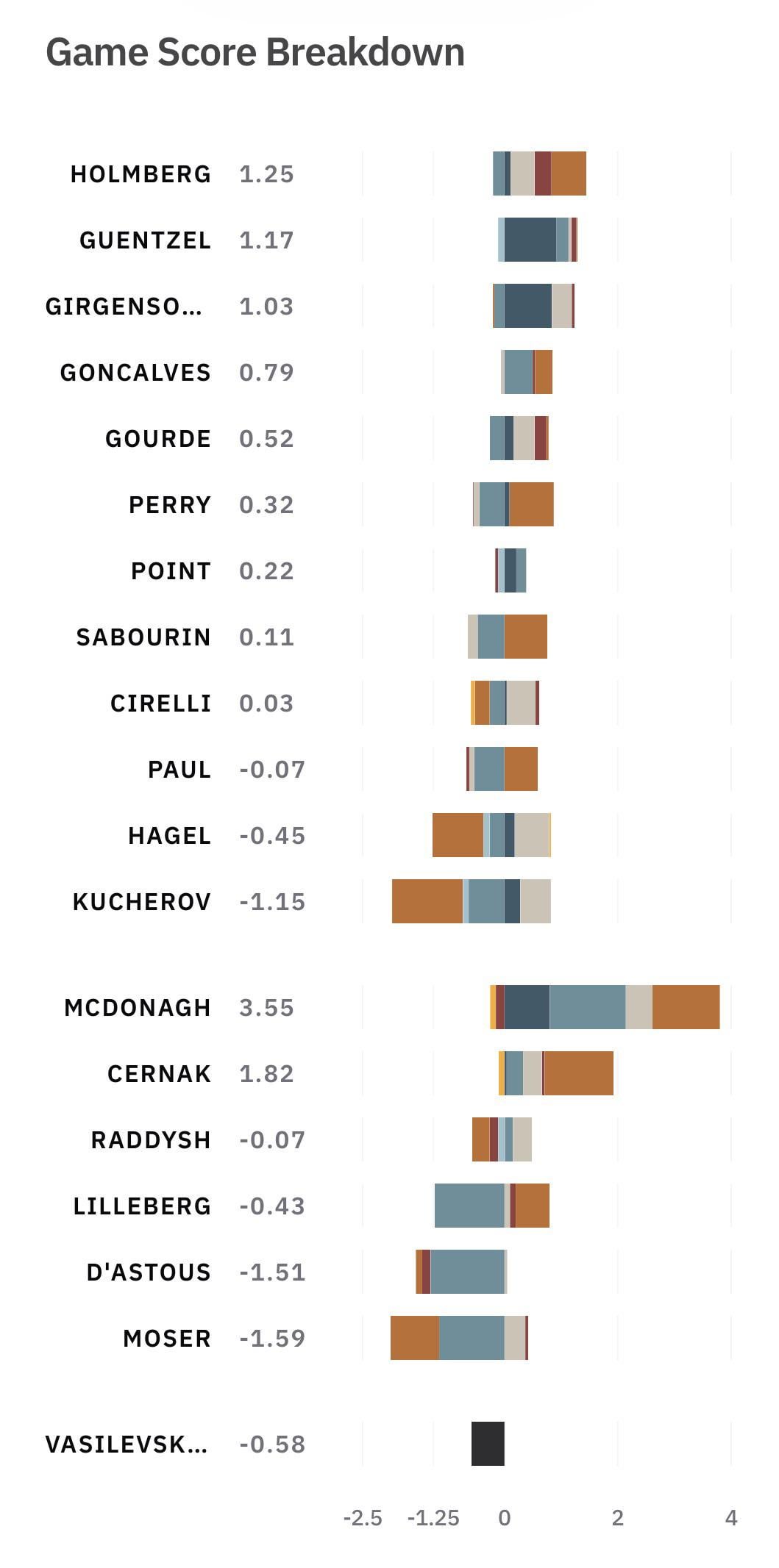 That said, I didn’t really think anyone had a terrible game and I think the low scores across the board reflect the fact that the team as a whole was just a bit flat.