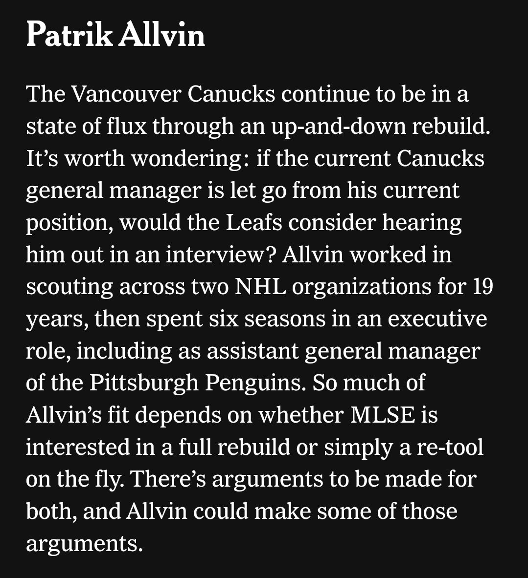 Nope. We already did the Canuck experiment with nonnis. Leafs management stop do not listen to media, or so called no it all YouTubers.