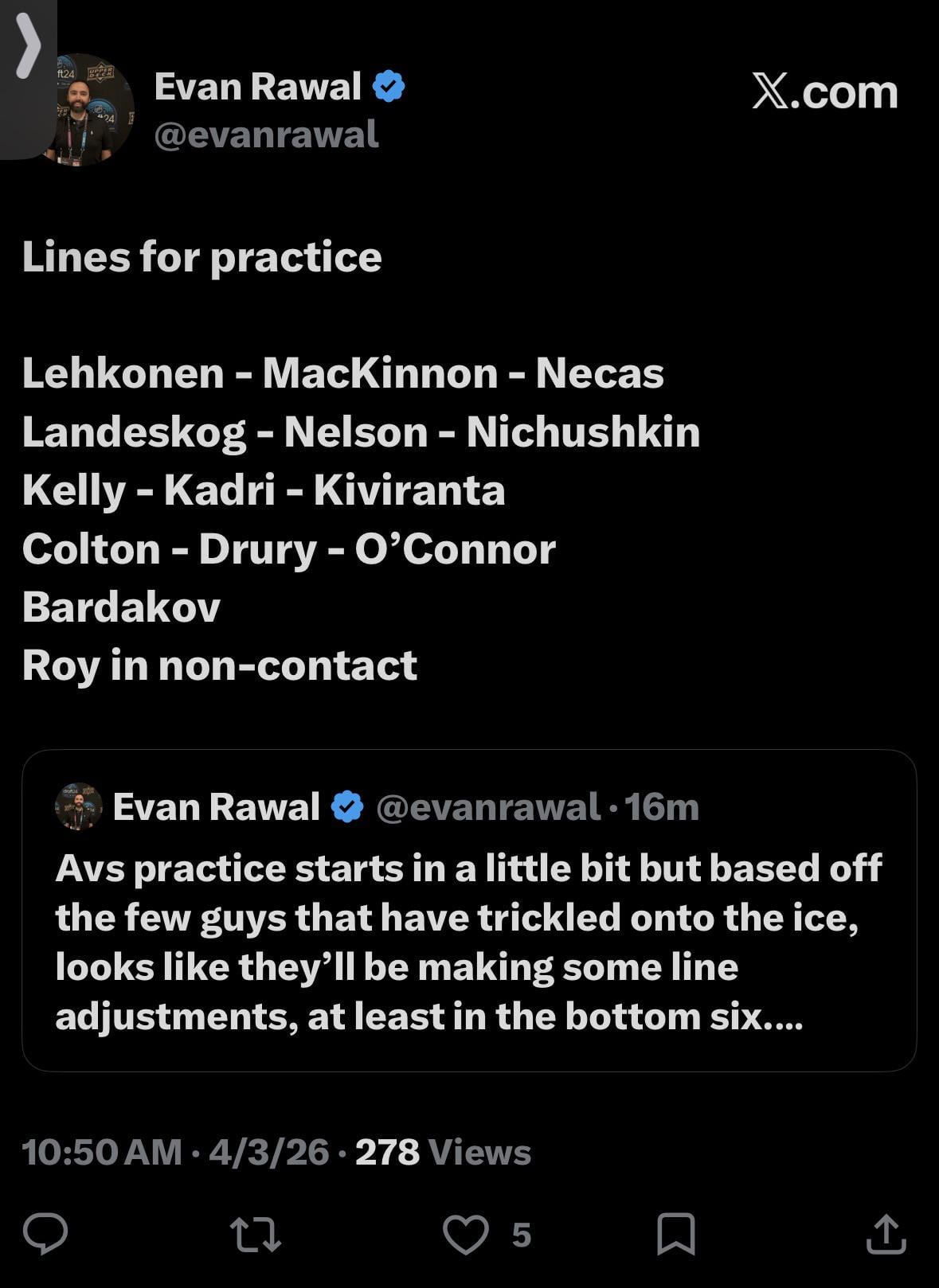 I’m starting to wonder if when Roy is back is Colton out instead of Kivi… 1st world problems I know but Kivi PKs