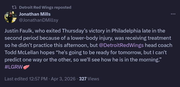 The Griffins play at 3 today, so if ASP is not in the lineup, that’s a good indication that it’s more serious and they think he might really miss a game