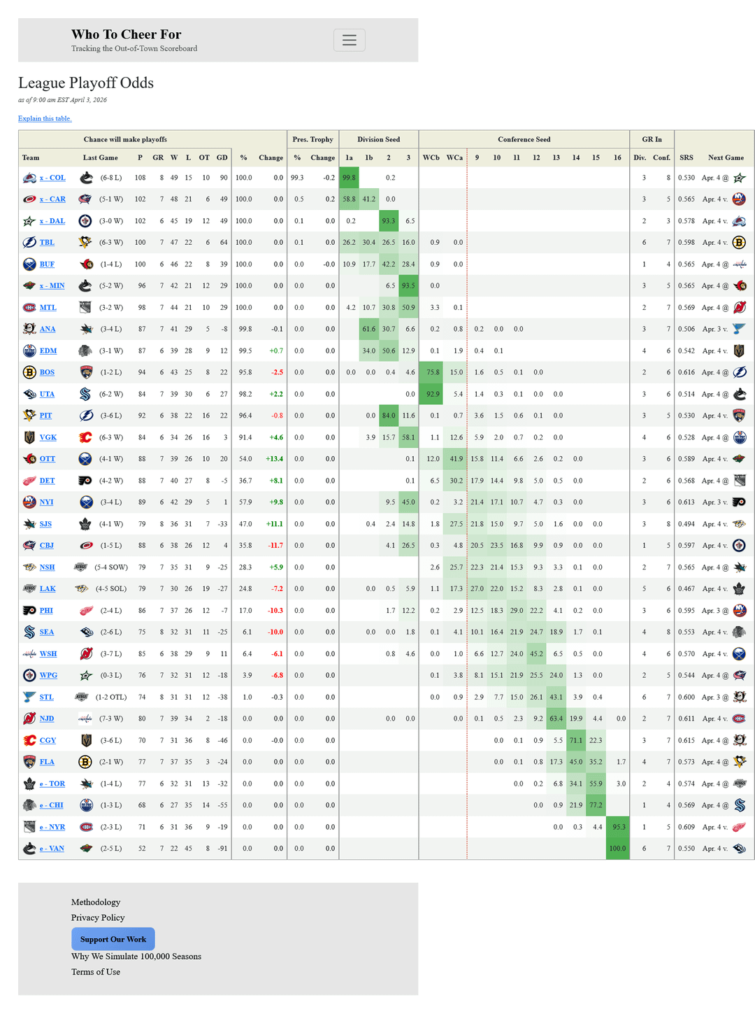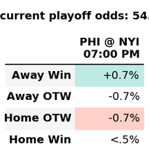 2. I’m surprised there’s so little difference here. I would imagine we actually want Philly to lose since NYI remaining schedule is tougher but the model basically says it doesn’t matter who wins as long as it’s a regulation win? Both have low regulation wins so risk of breaking the tie breaker is low too