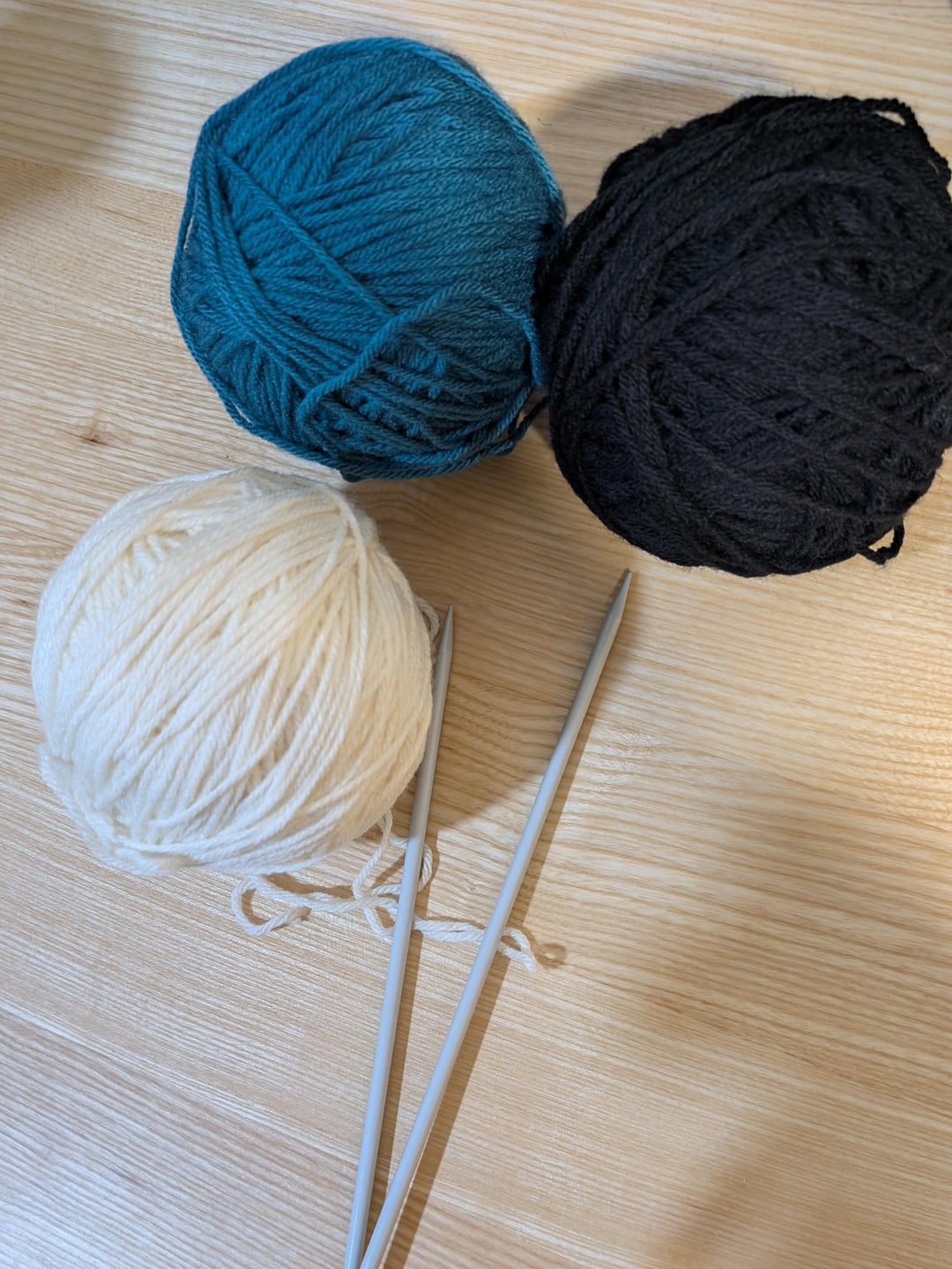 13. La dernière photo ne représente que mes aiguilles à tricoter et le fil, à l’époque où l’écharpe n’existait pas.