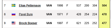 What record can he break? I’m confused looking at the screenshot. Is it most goals in Canucks history, is it most assists, most points per game, most games played?