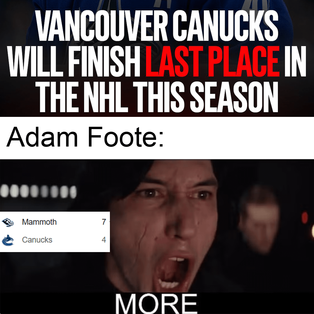 Quand tu es surqualifié pour le travail de tank — NinCross Association de l’OuestCanucks de VancouverPacific DivisionPacifique DivisionVancouver CanucksWestern Conference 5 Comments Count3D 3 semaines ago Perform historically bad. Perform microscopically better next season. Label next season a success because we improved over last season. Salmon_Slayer1 3 semaines ago  leyden138 3 semaines ago I hated him when he was a player for Colorado, I hate him more as part of the Canucks organization. JediFed 3 semaines ago That’s exciting. Only two more home games, with just 8 wins at home out of 41 games. Downtown_Ad2001 3 semaines ago I thought the game was fun to watch Write A CommentVous devez vous connecter pour publier un commentaire.