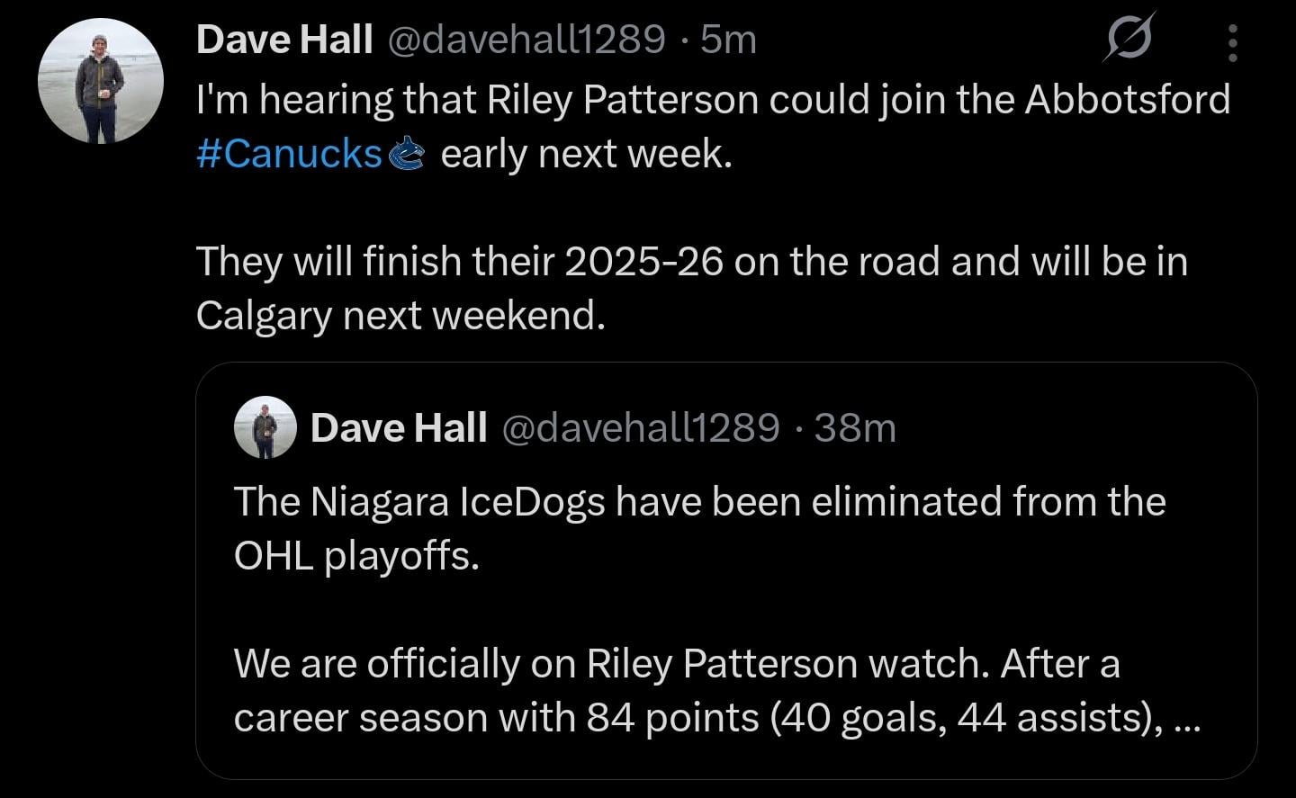 I’m actually pretty excited about Pattersson. 40 goals on a weak team like the IceDogs is a great season. Hopefully he, Cootes and Romani can give Abbotsford a boost next year.