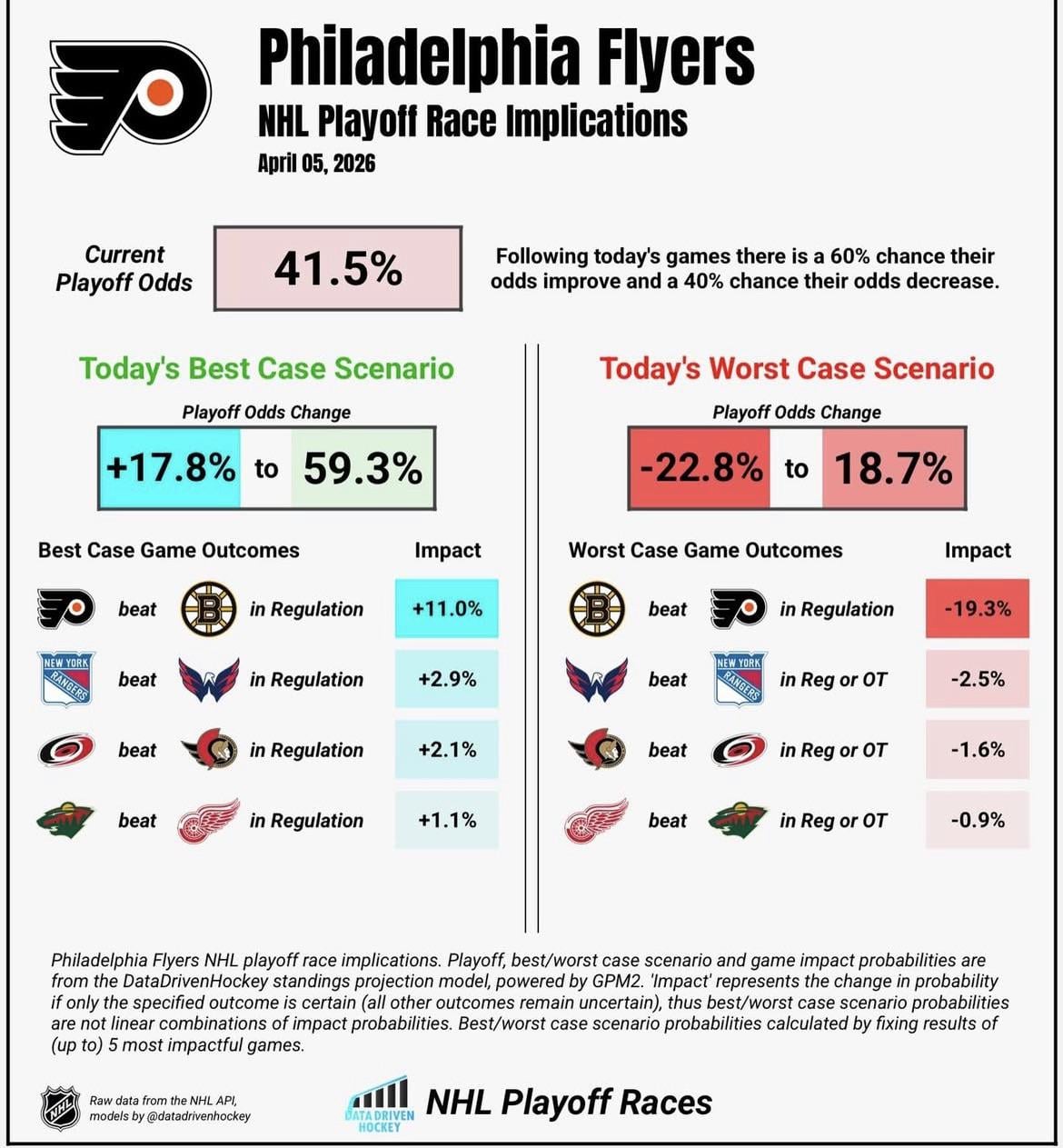 6. During the last nationally broadcast game their odds were something like 4% and one of the announcers said they don’t think the flyers had a chance. Proving them wrong would be so wonderful right now