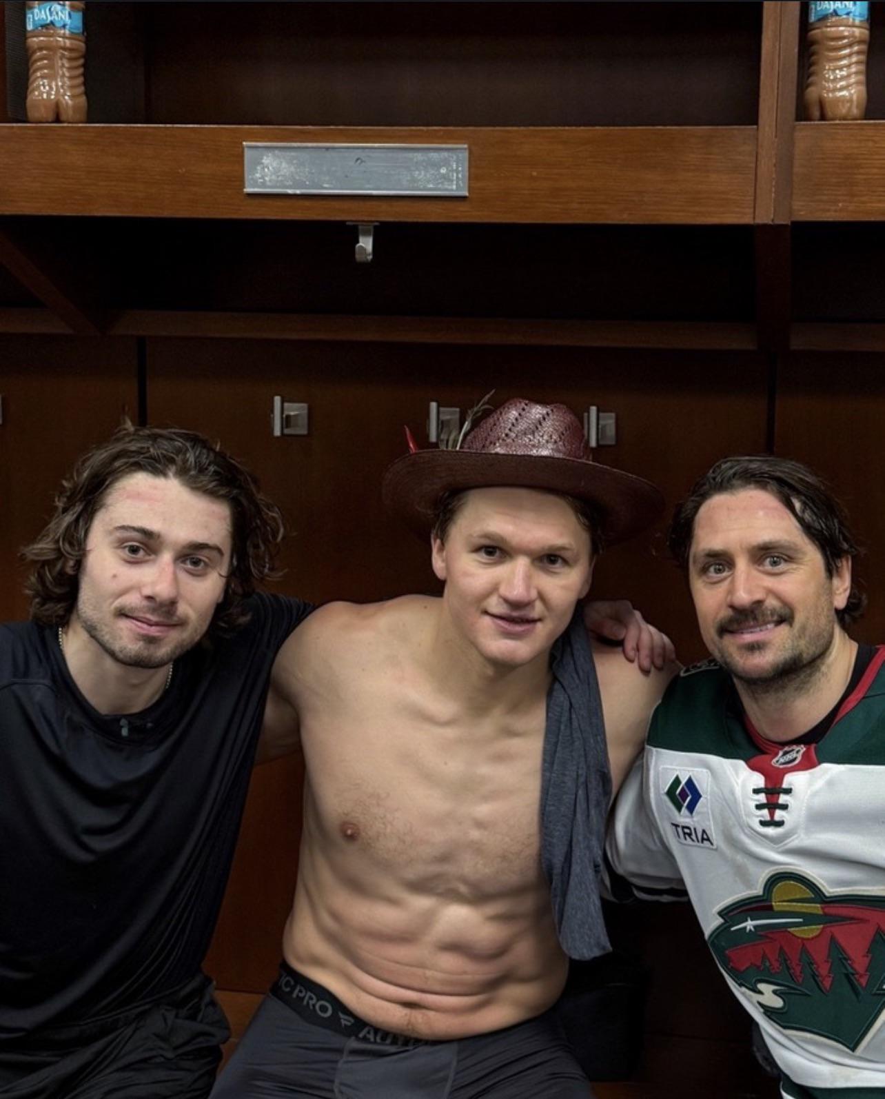 Quinn Hughes in post game pic! how rare!
