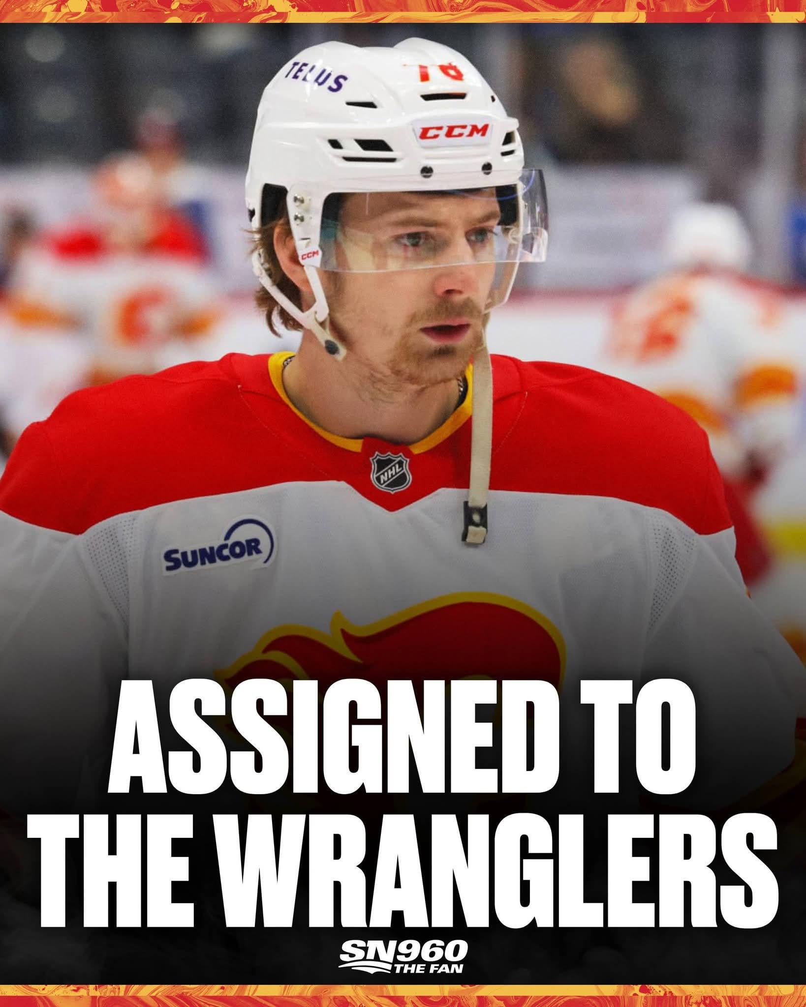 FWIW each club is only allowed 4 active AHL callups on the roster right now, and currently we have 3 (Gridin, Bru, Suniev). Likely that the Flames want to reward Kerins/Stromgren in these last few games so Othmann has to go down