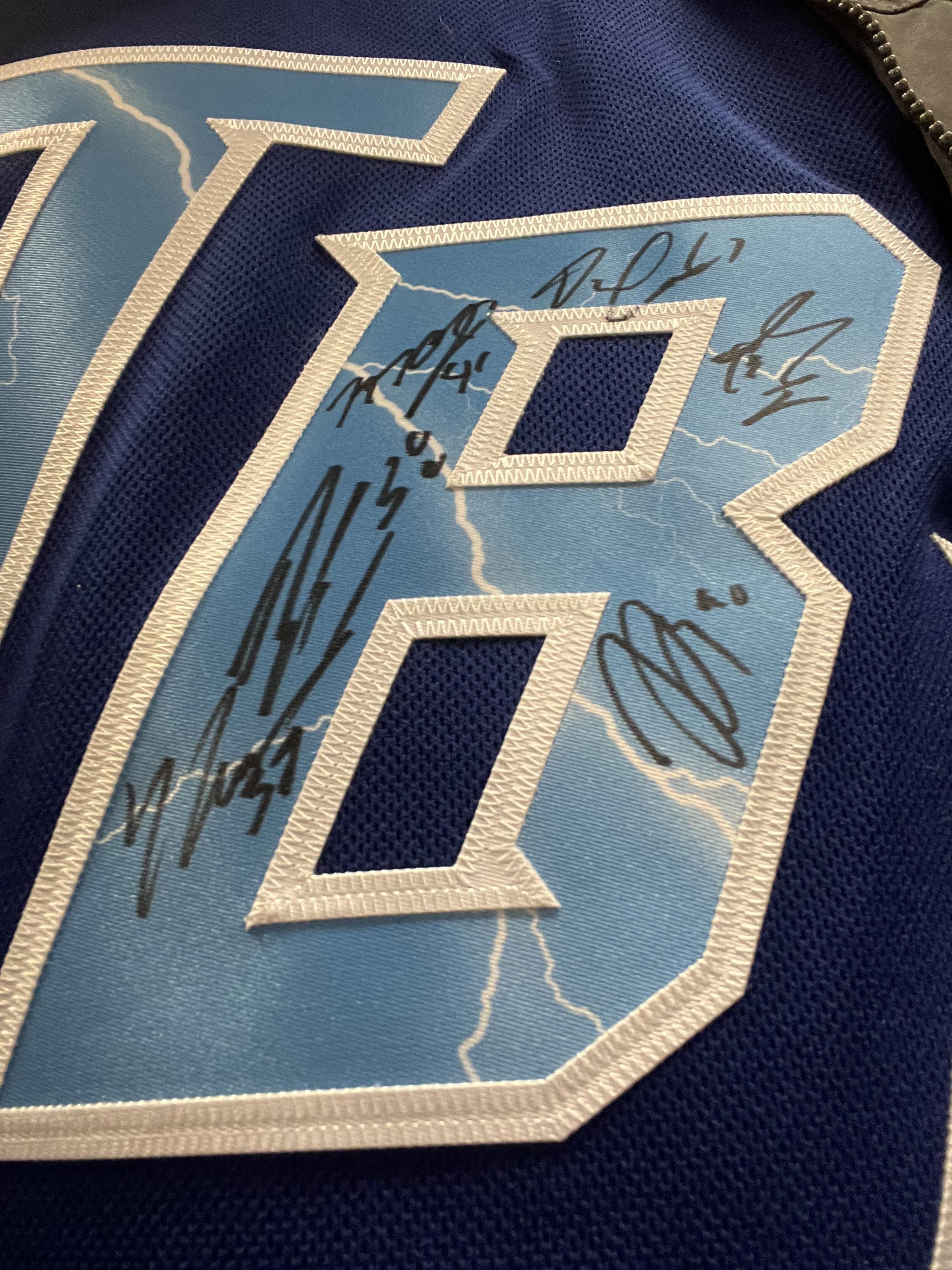 Hagel, Gourde, Moser, Goncalves, Carlisle et Chafee ont tous signé mon maillot.