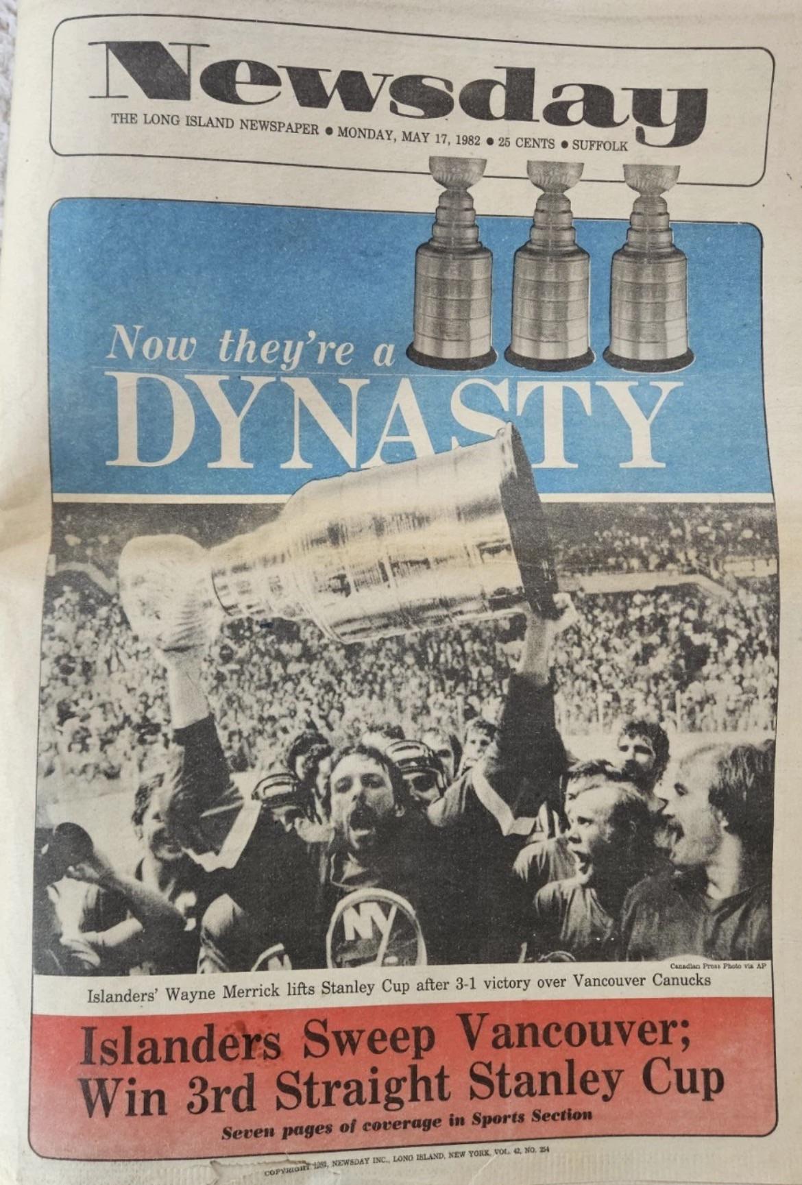 Félicitations aux Panthers de la Floride pour leur superbe parcours en Coupe. Pendant que notre équipe poursuit sa campagne en séries éliminatoires (comme c’est le cas, certains jours)… J’aimerais prendre un moment pour commémorer le fait que (désolé les Wings, Bolts, Flyers, Pens, Cats, etc.)… il n’y a toujours qu’une seule dynastie américaine, et elle a élu domicile à Long Island. 🏆🏆🏆🏆