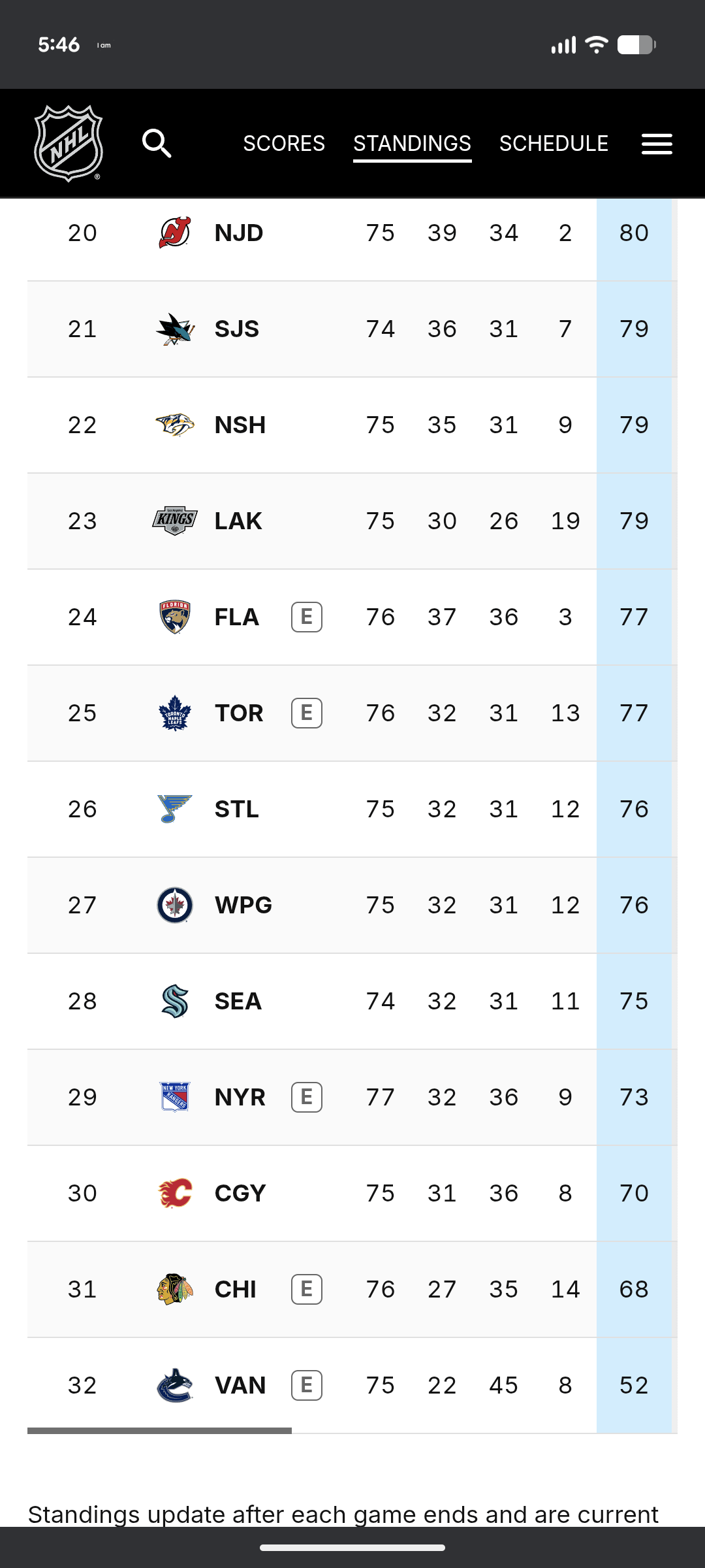 It’s actually wild to me how bad the Pacific is, for example any team in the top 3 could miss the playoffs if they go 2-2-1 or worse in their last 5 and the kings win their last 6