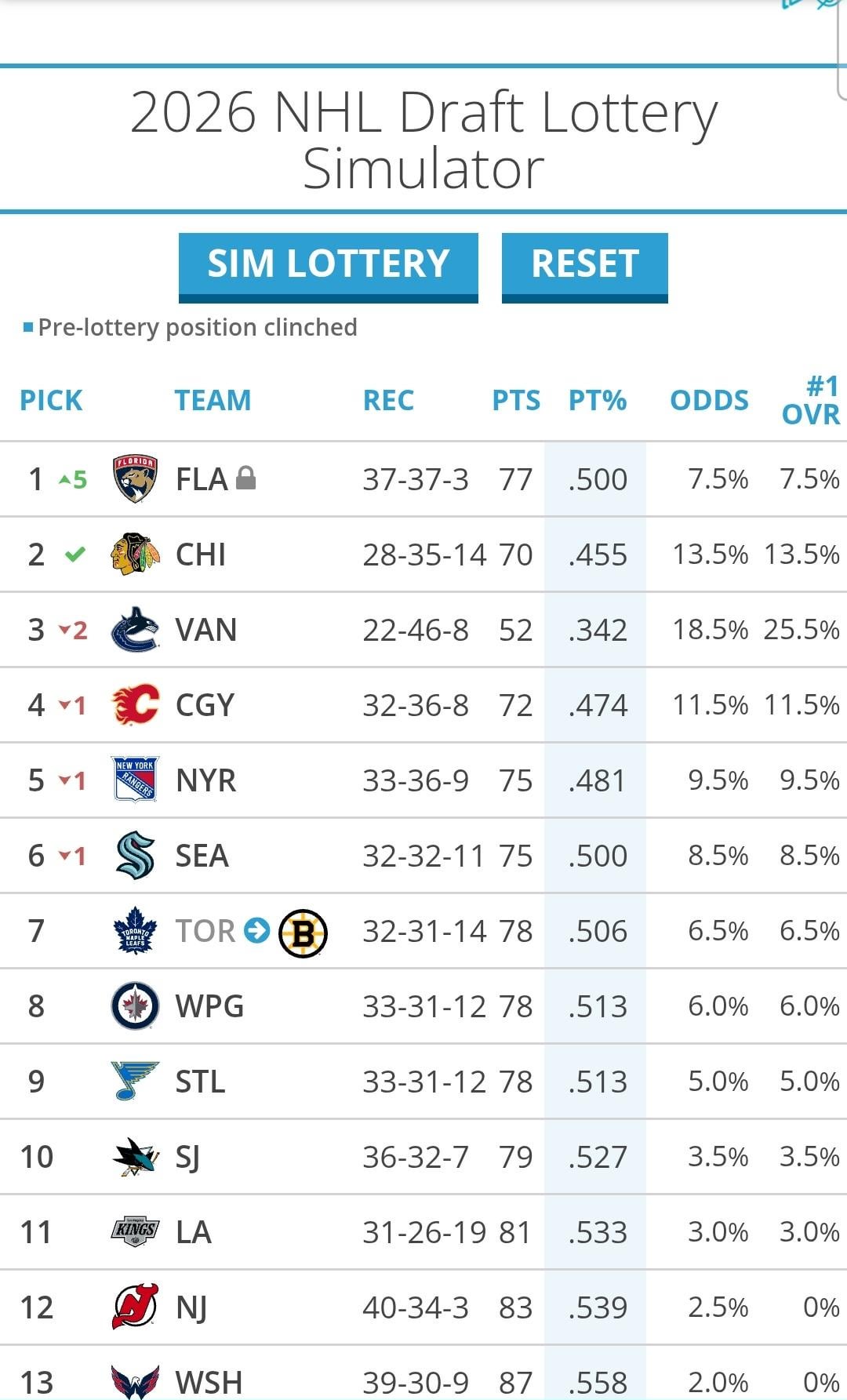 The lottery feels cursed this year. Over half of the teams in the top-11 lottery make me sick to imagine winning (Florida, Hawks, NYR, Toronto, San Jose, Kings, LA). I don’t particularly like the idea of the Flames or Kraken jumping us either.