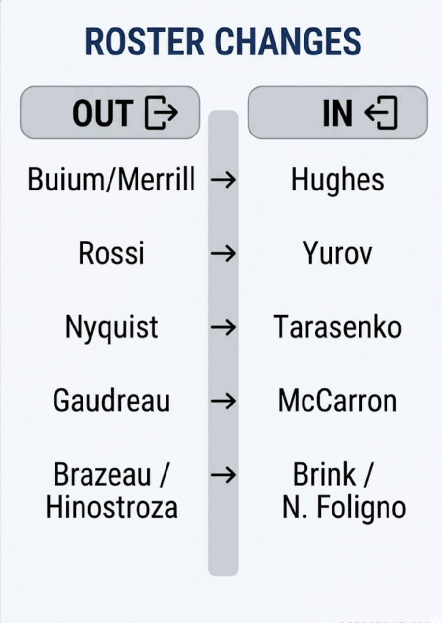 Hughes, Vladdy, and Brink/Foligno are upgrades in my opinion. Rossi and Gaudreau are downgrades