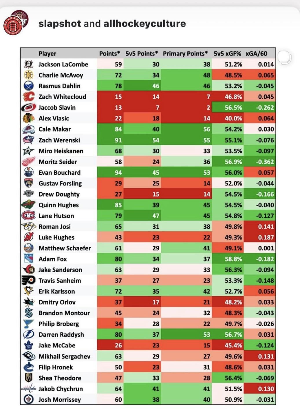 Imagine if Mack had Draisaitl? Makar? Vasy in net? Guentzel and Hagel? Will Smith isn’t a scrub but he’s at 22G and 54pt.