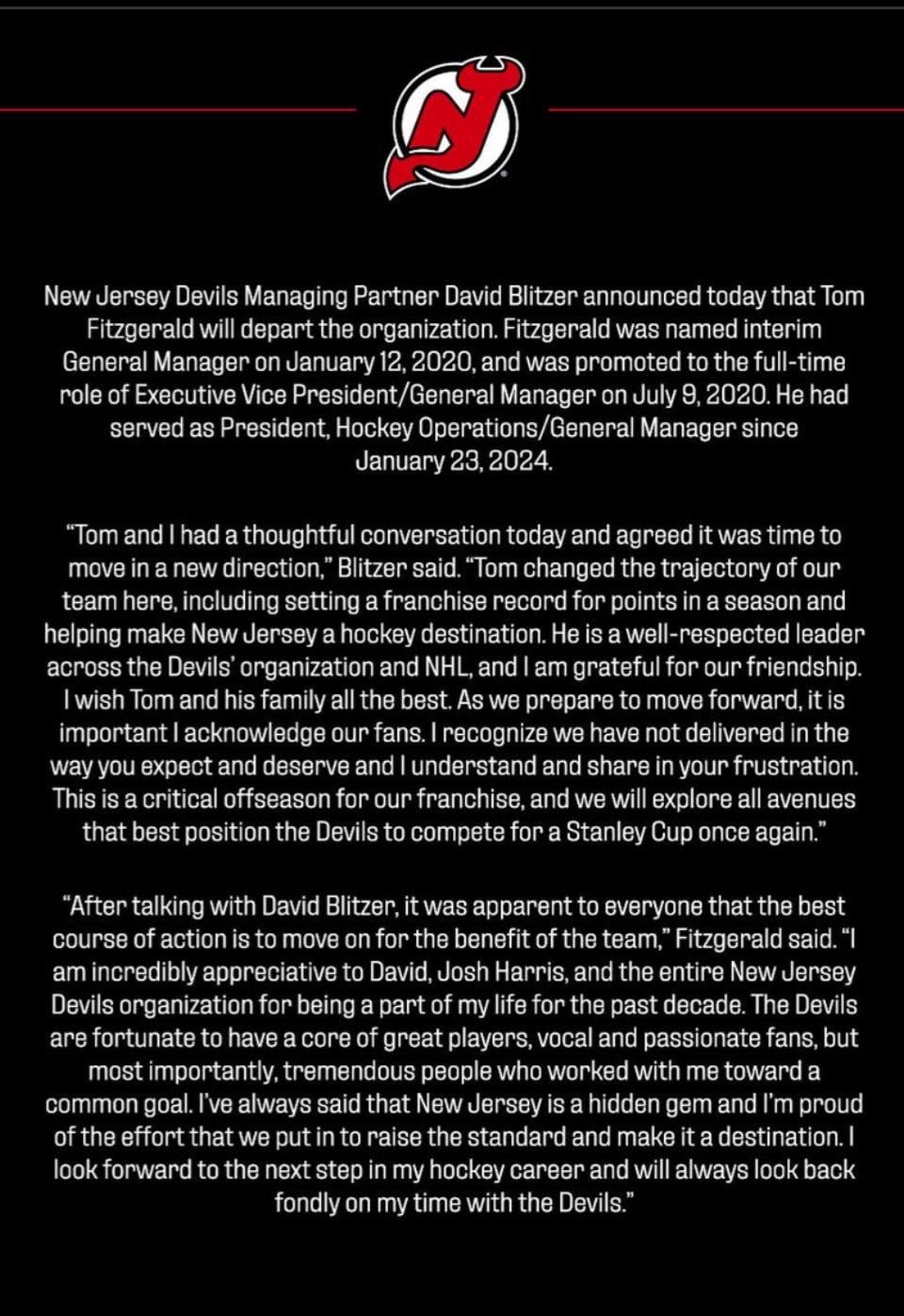 So now what? Who are candidates? Shanahan? Mehta? I’m not big on knowing much about GM lore. I don’t want to celebrate *too* much until we know who the replacement is and their vision. Also I wonder how the players feel? There is a human element and many of these guys were signed, drafted, traded by Fitz. I’m obviously thinking about core guys in Jack, Nico, Bratt. Nico up for extension has me a little nervous. Jack’s family being connected to Fitz as well, is there an impact there? I know at the end of the day it’s a business and the players know that too so hopefully they all see this as a step towards something positive.
