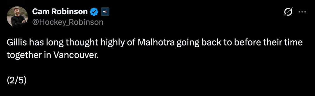 Is there any actual juice to the names being thrown around for these positions or are people just saying stuff? Like Malhotra in the mix? How and why do we know that? Same with that AGM from the Panthers. Are these people that “make sense” or is there a legitimate source saying they’re being considered?